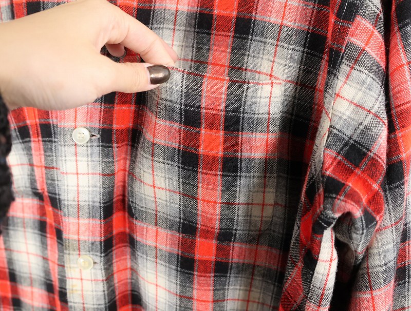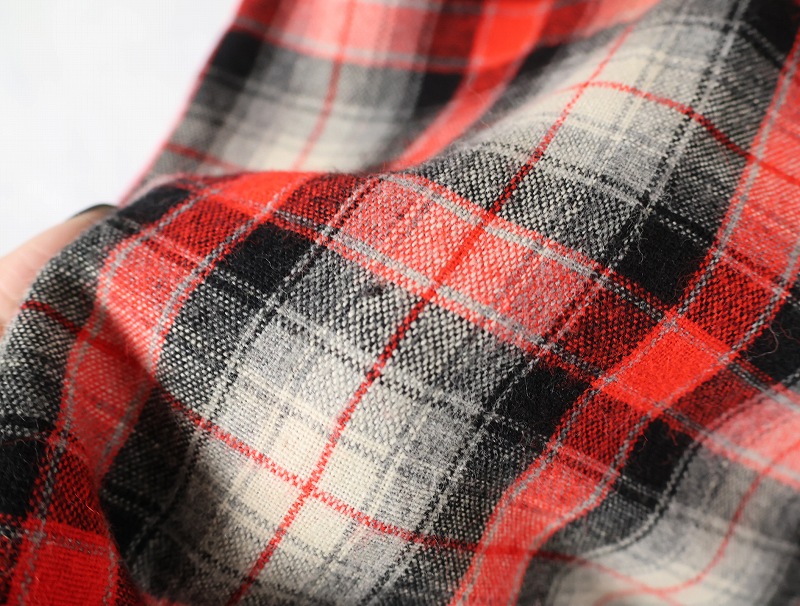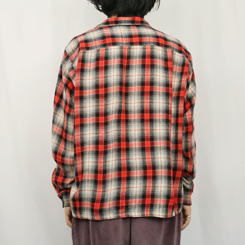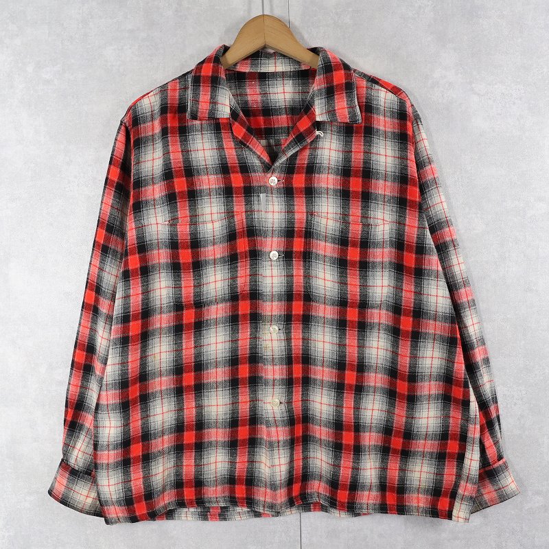60's〜 オンブレーチェック柄 ウールオープンカラーシャツ [161547]