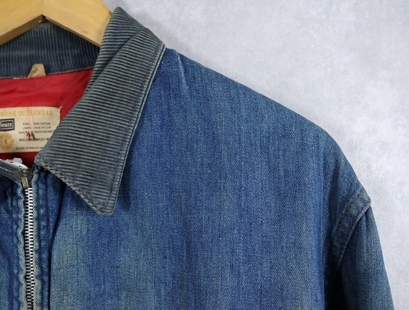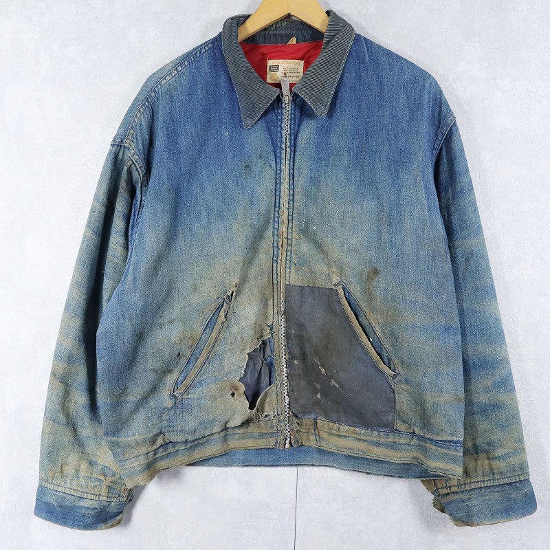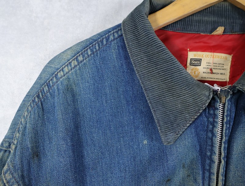 70's Sears キルティングライナー デニムカバーオール L [161549]