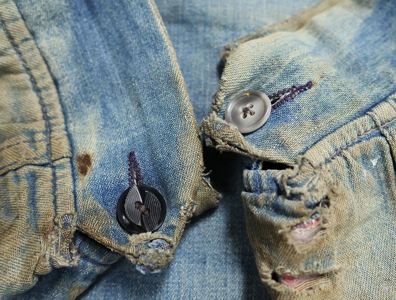 - 擦れ、ほつれ、汚れ、袖口ボタンの付け替え等のフェードがありますが、とても雰囲気の良い一点です。