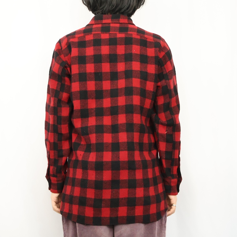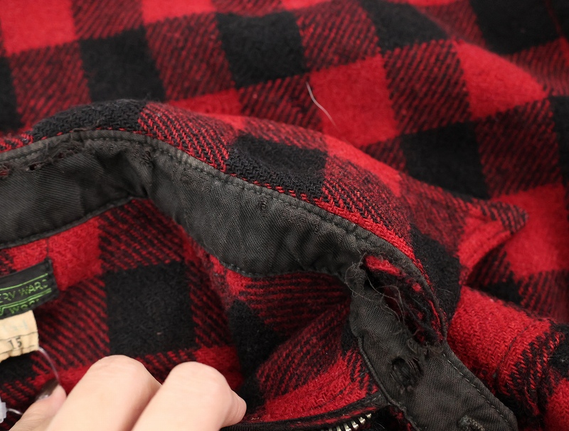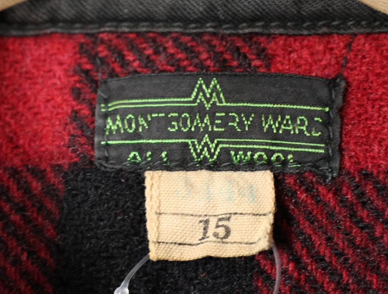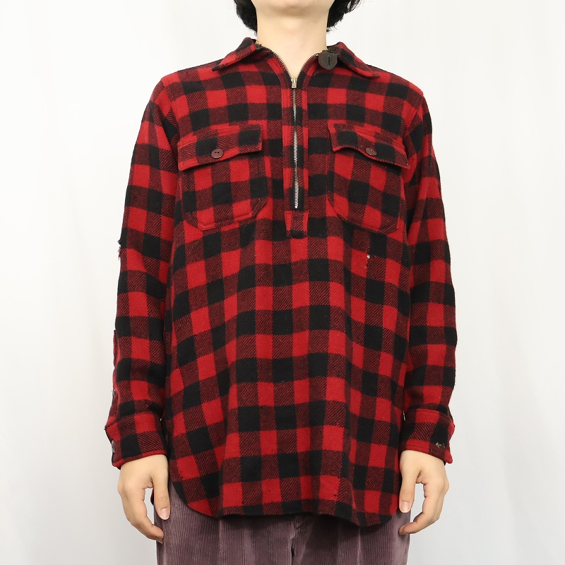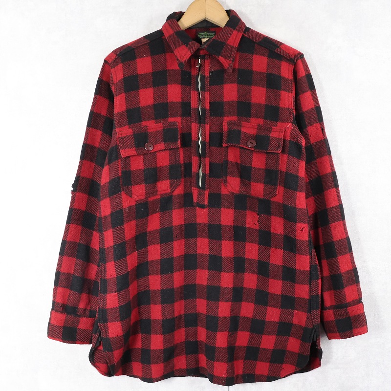 40’s MONTGOMERY WARD バファローチェック柄 ハーフジップウールシャツ SIZE15 [161551]