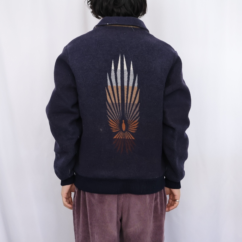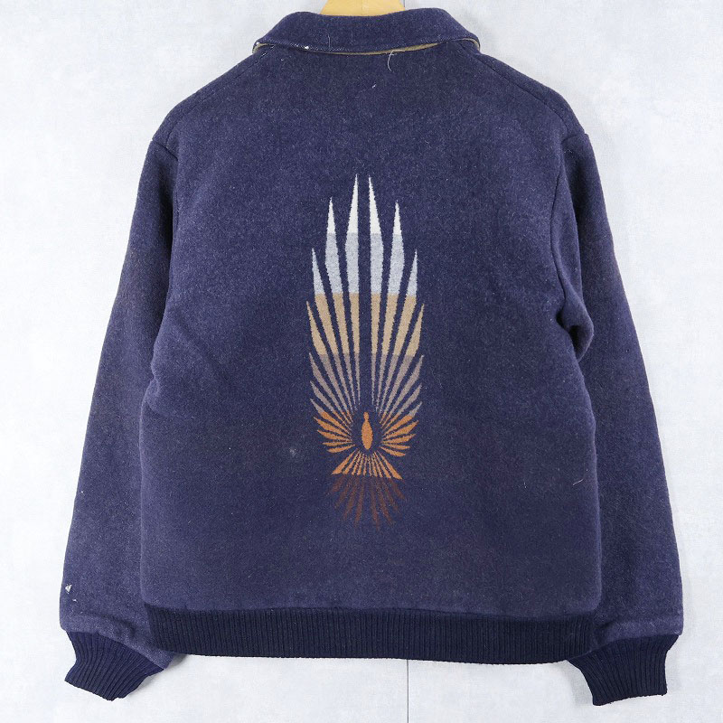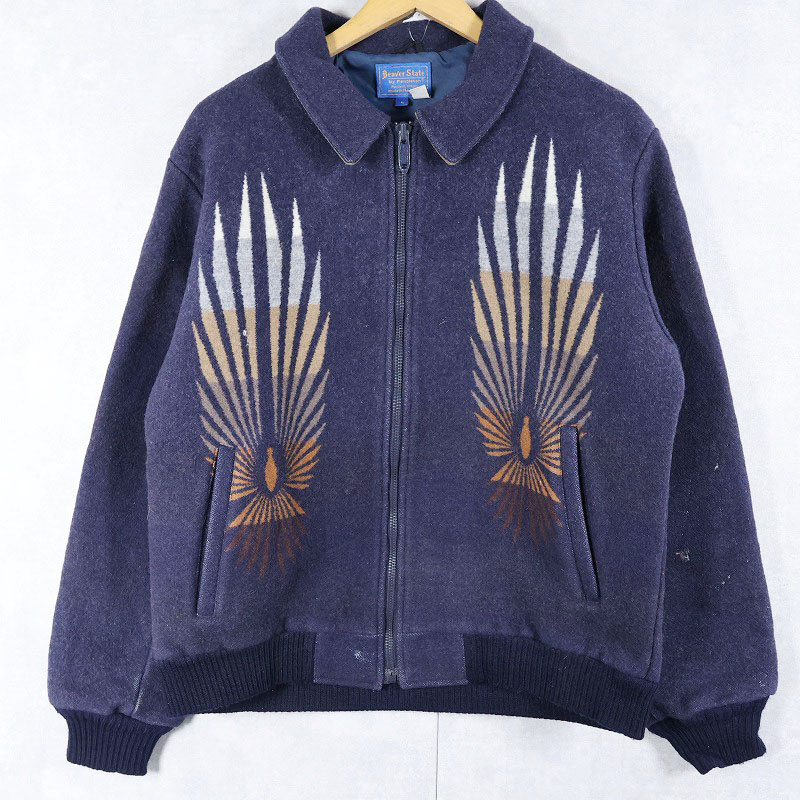 80's Beaver State PENDLETON USA製 ネイティブ柄 ウールジップジャケット NAVY L [161555]