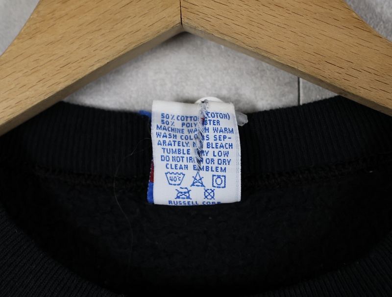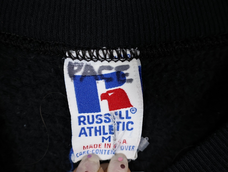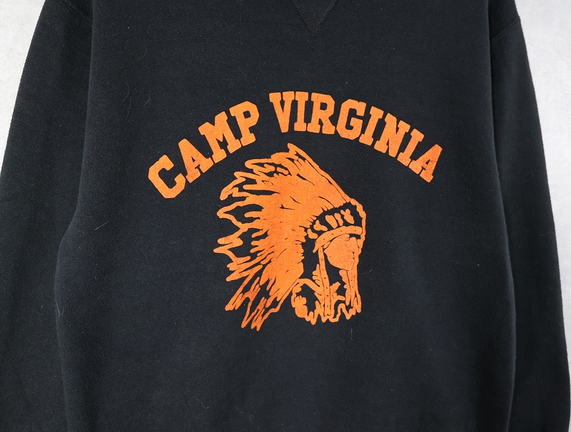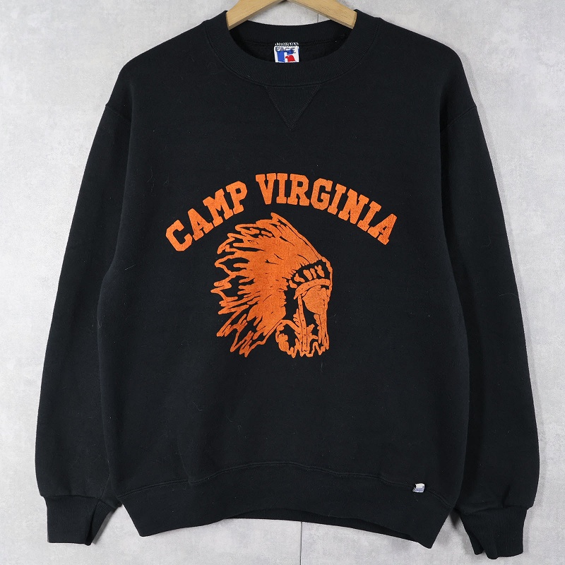 90's RUSSELL ATHLETIC USA製 前V "CAMP VIRGINIA" プリントスウェット BLACK M [161577]