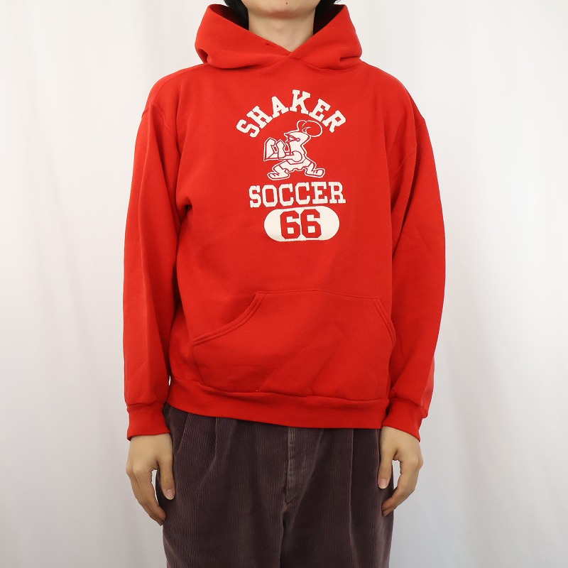80's RUSSELL ATHLETIC USA製 "SHAKER SOCCER" プリントスウェットフーディー L [161579]