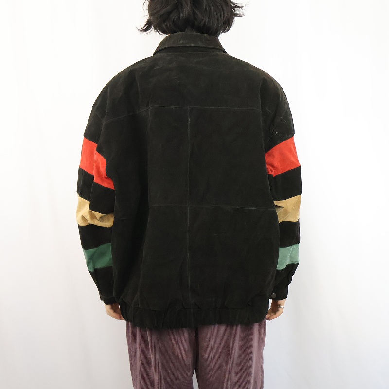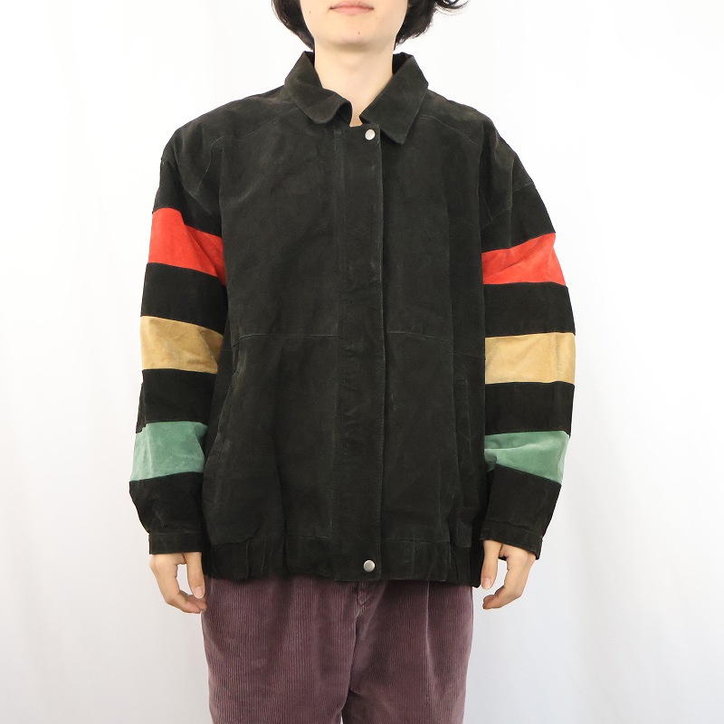 90's Julia Michaels ラインデザイン ヌバックレザージャケット BLACK 3X [161580]