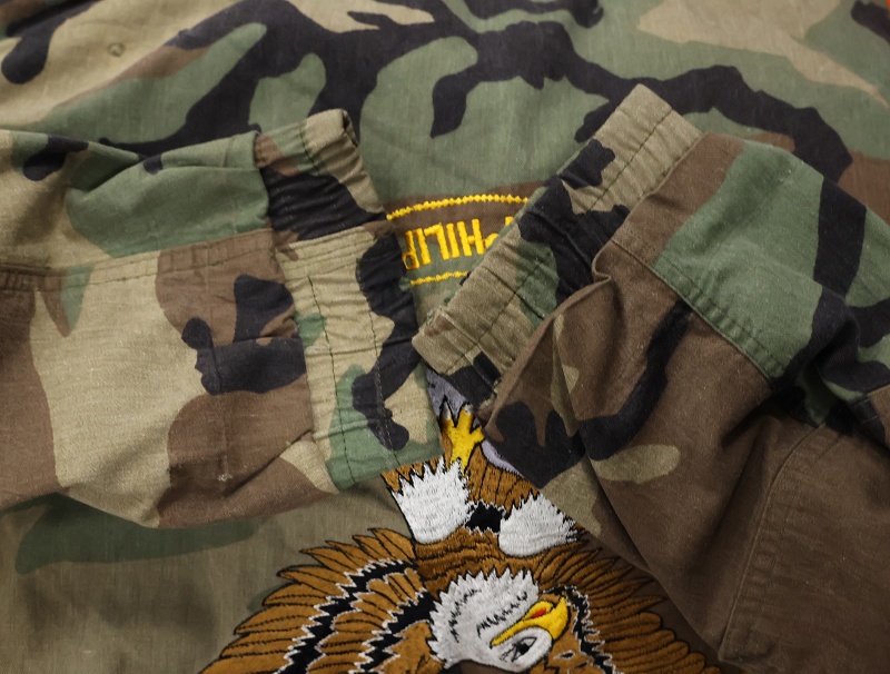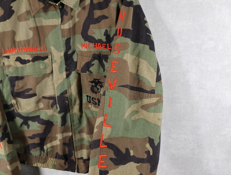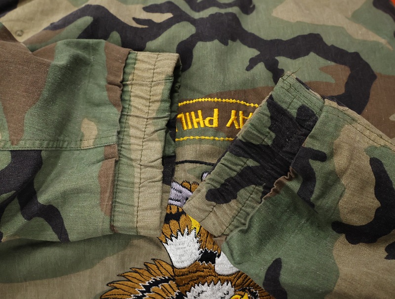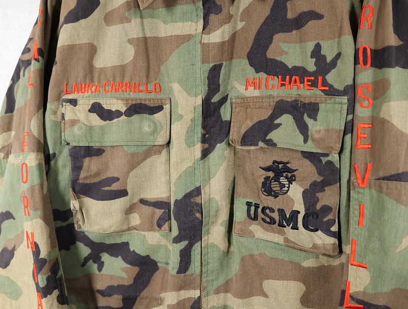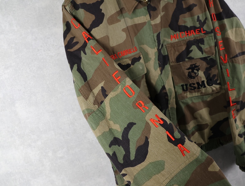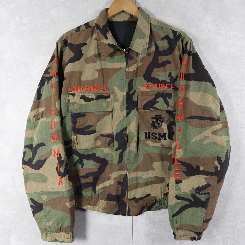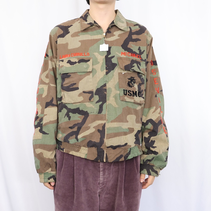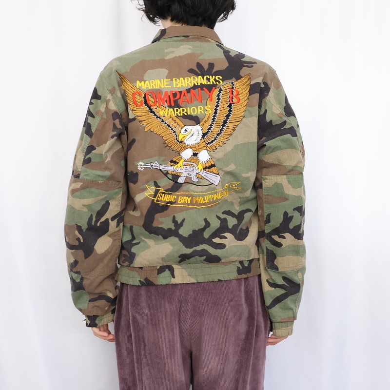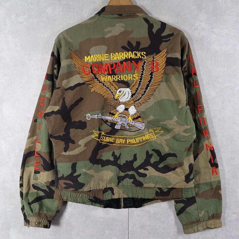 80's U.S.M.C. "MARINE BARRACKS COMPANY B WARRIORS" ウッドランドカモ柄 スーベニアジャケット [161590]