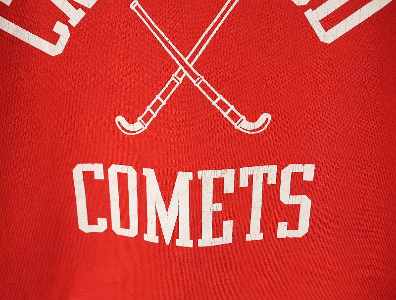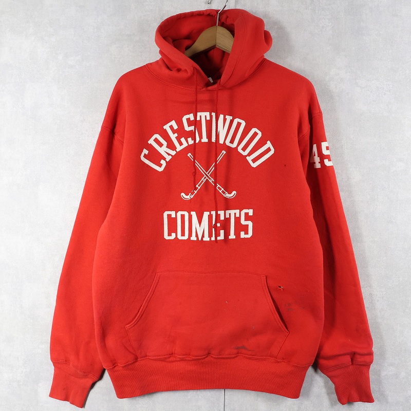 80's RUSSELL ATHLETIC USA製 "CREST WOOD COMETS" ダブルフェイス プリントスウェットフーディー L [161604]