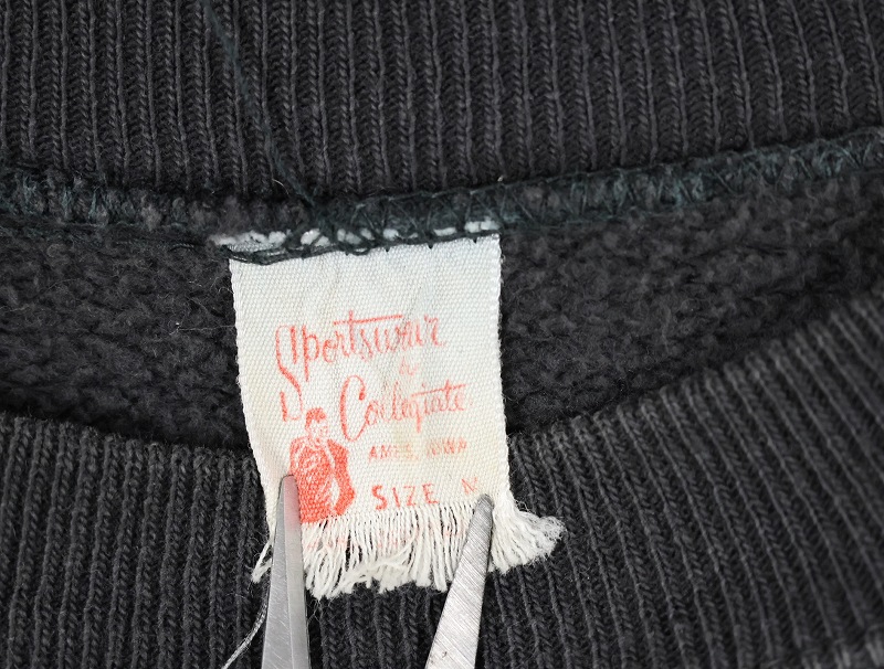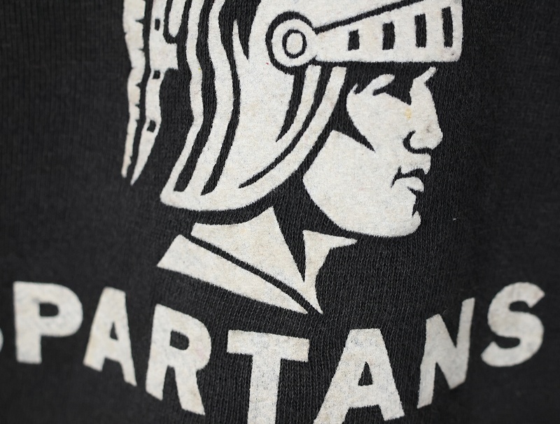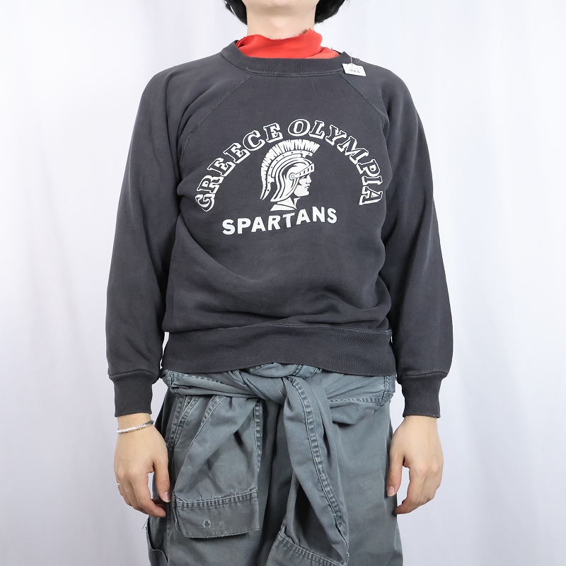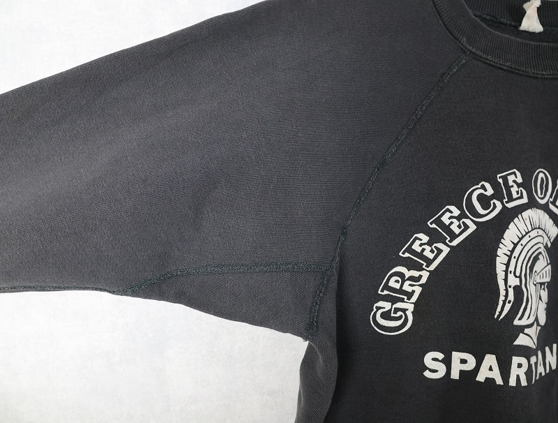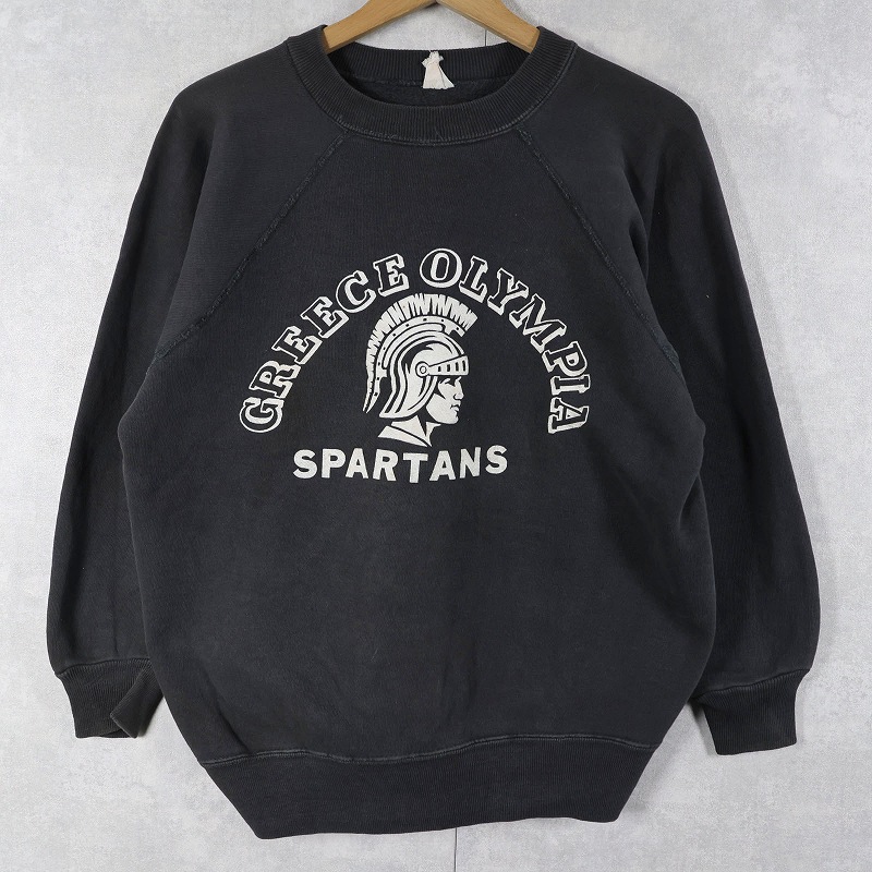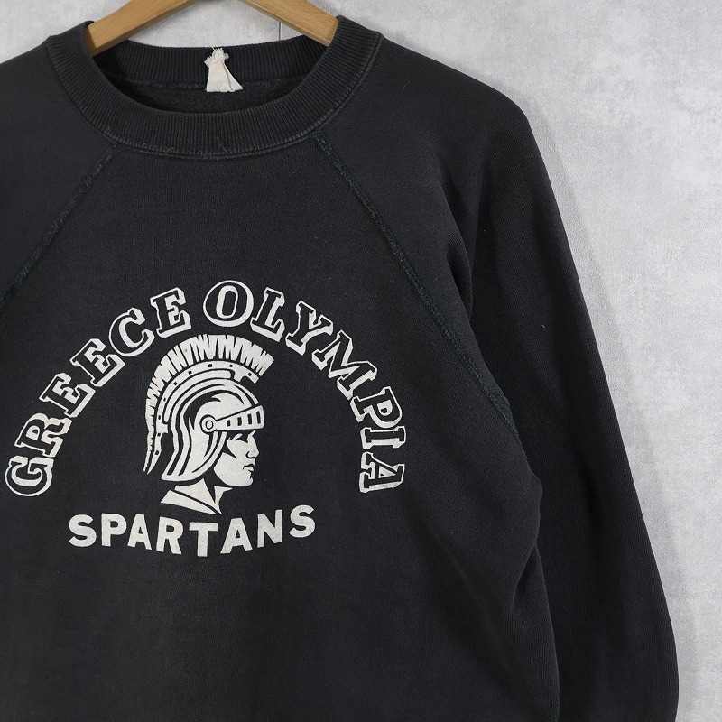 60's Sportswear by Collegiate "GREECE OLYMPIA SPARTANS" フロッキープリント ラグランスウェット BLACK M [161607]