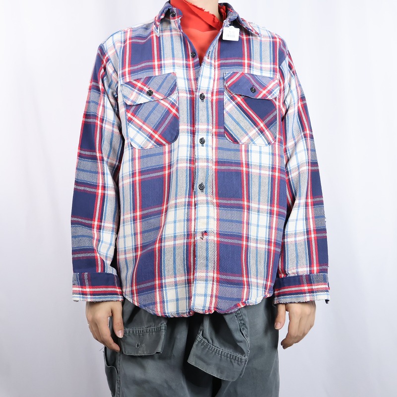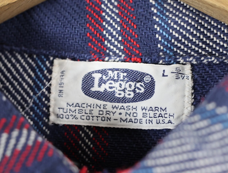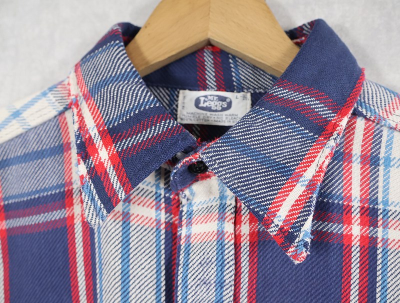 70's Mr.Leggs USA製 チェック柄 ヘビーネルシャツ L [161610]