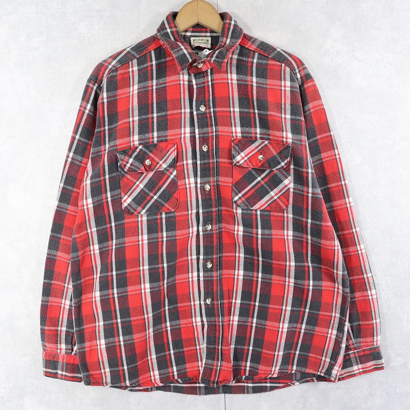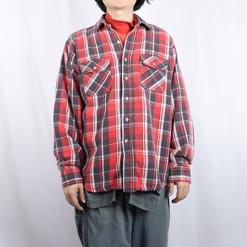 90's FIVE BROTHER チェック柄 ヘビーネルシャツ L [161612]