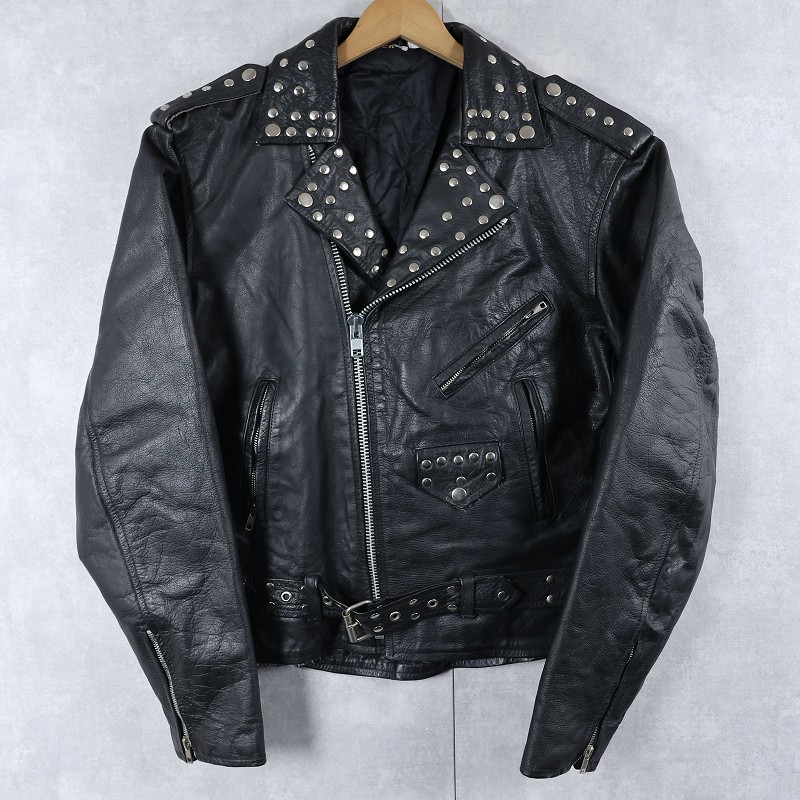 90's UNKNOWN スタッズカスタム ダブルライダースジャケット SIZE50 [161691]