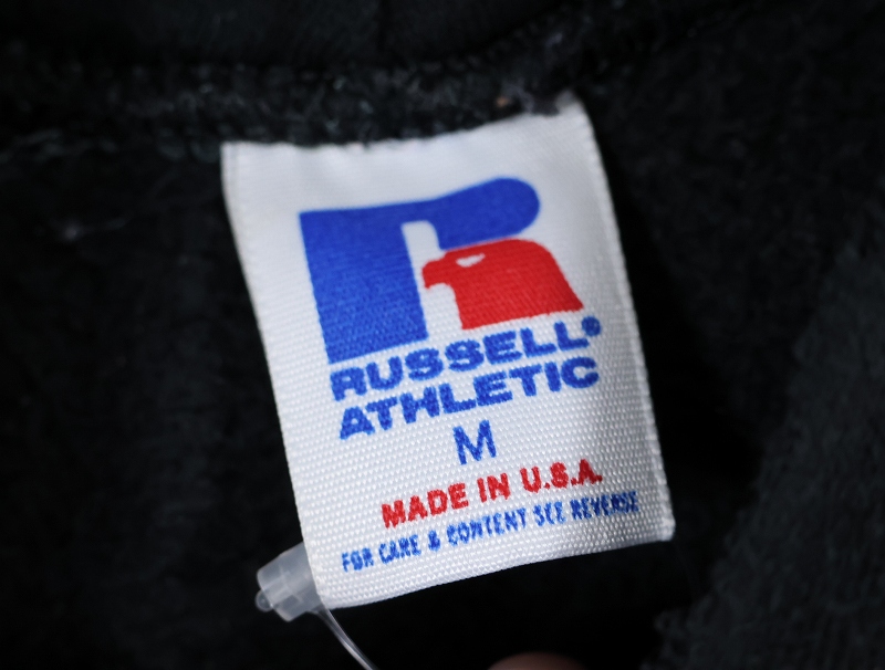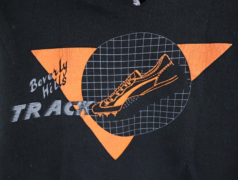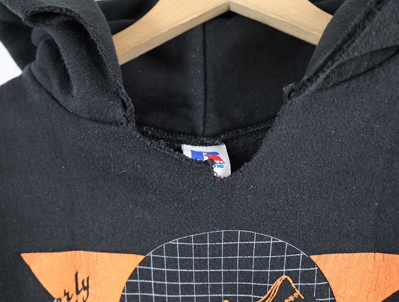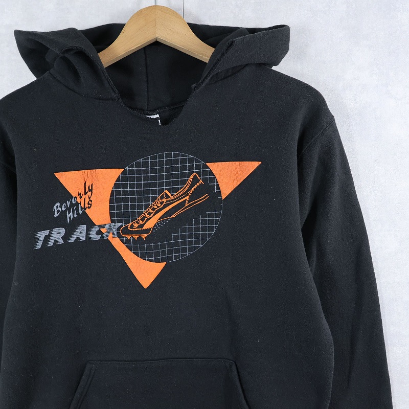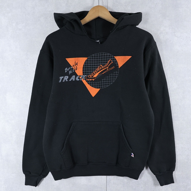 80's RUSSELL ATHLETIC USA製 "Beverly Hills TRACK" プリントスウェットフーディ BLACK M [161702]