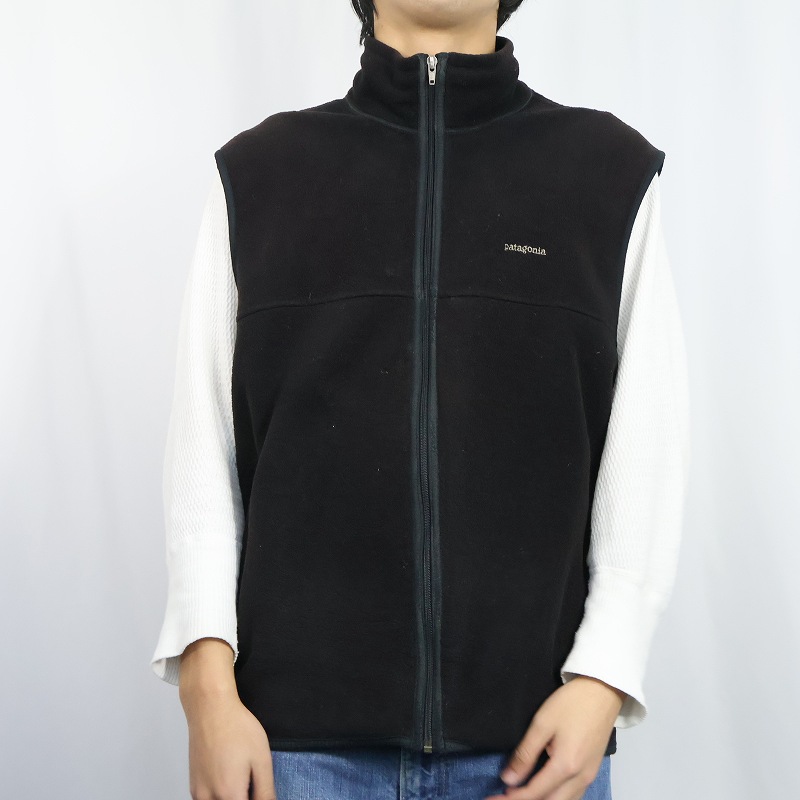 90's〜 Patagonia ロゴ刺繍 フリースジップベスト BLACK L [161704]