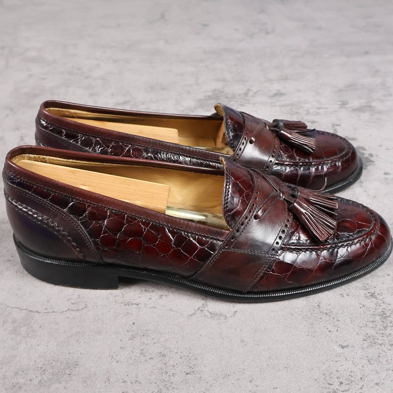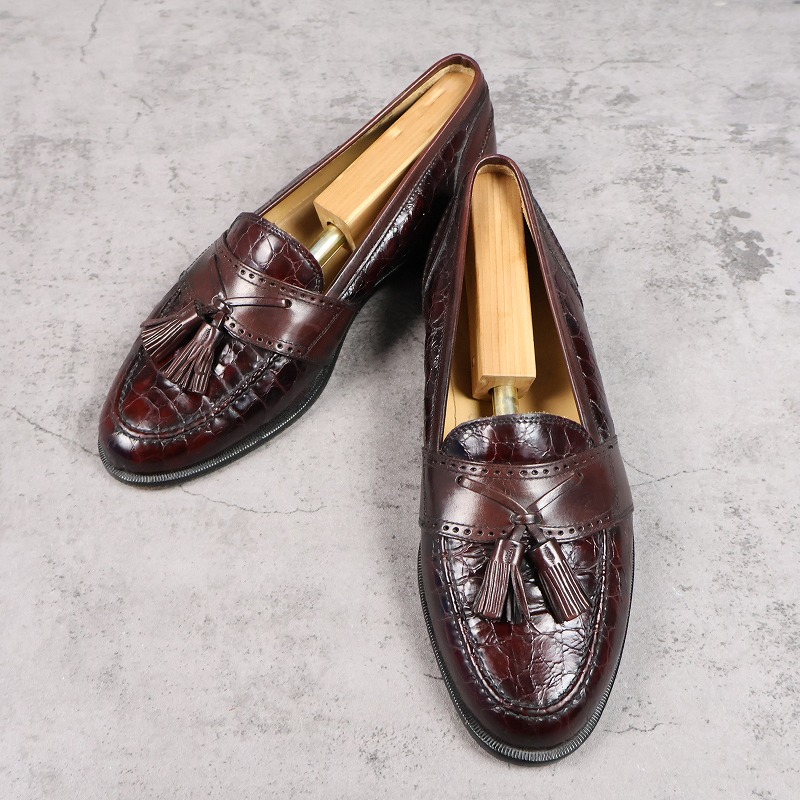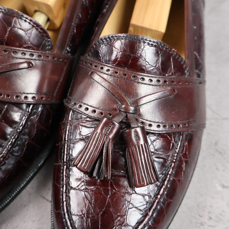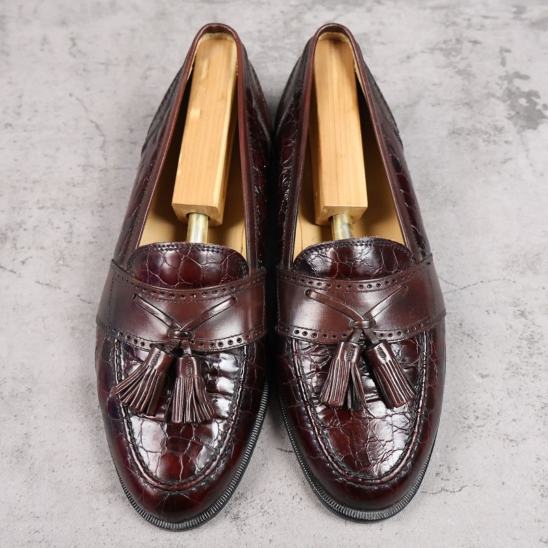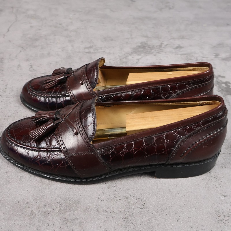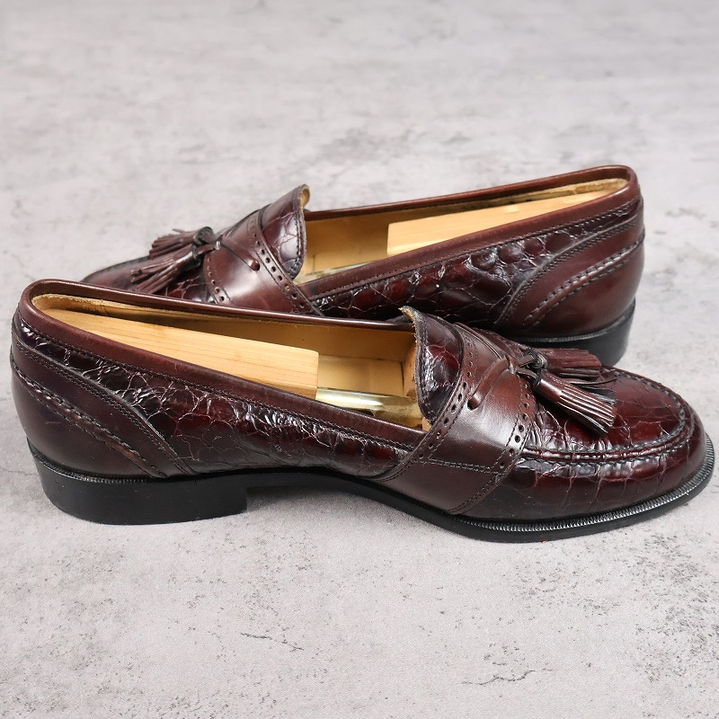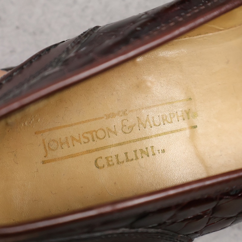 JOHNSTON&MURPHY ”CELLINI" ITALY製 型押しクロコ切り替え キルトタッセルローファー 26.5cm シューキーパー付き [161710]