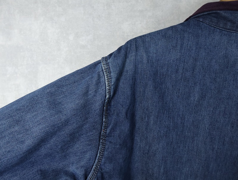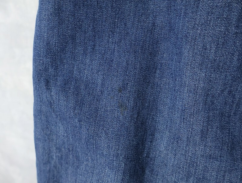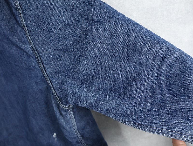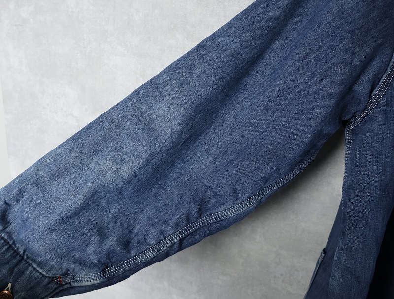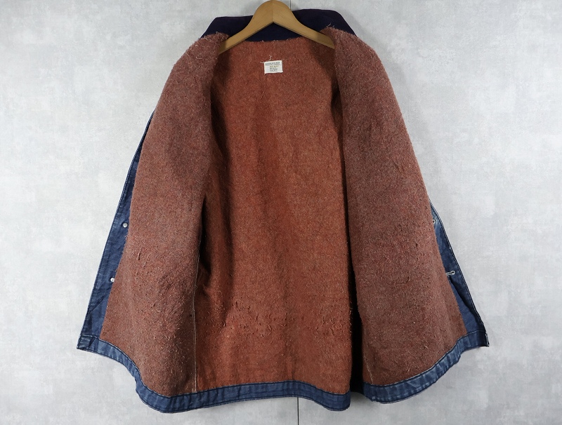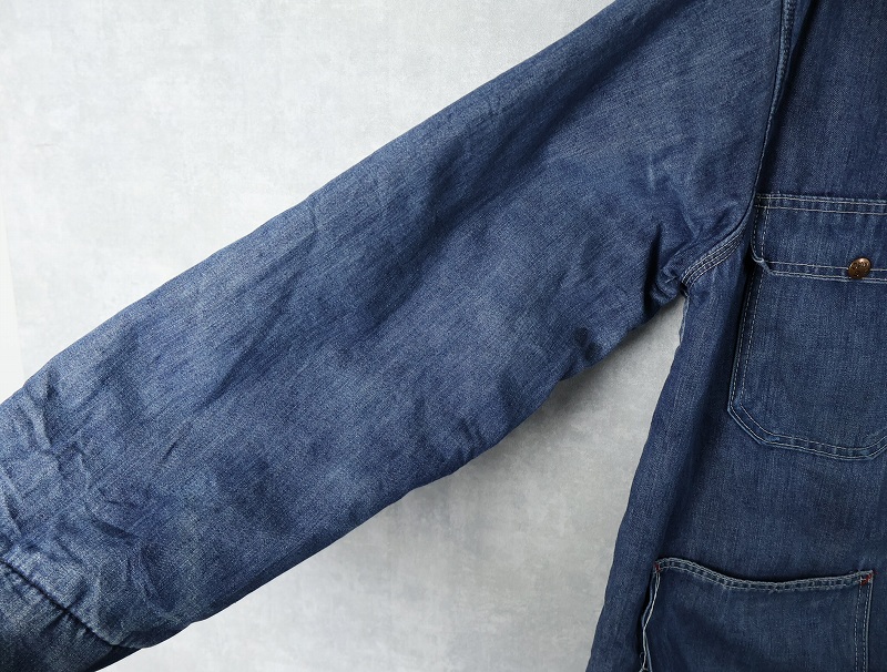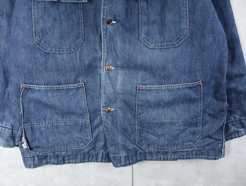 - 色落ち、シミ、黄ばみ、裏地とポケットに破れがありますが、とても雰囲気の良い一点です。