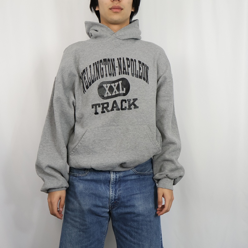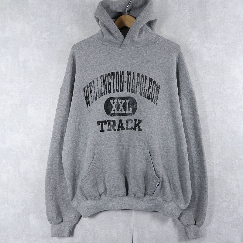 90's RUSSELL ATHLETIC MEXICO製 ”WELLINGTON-NAPOLEON" プリントスウェットフーディー XL [161732]