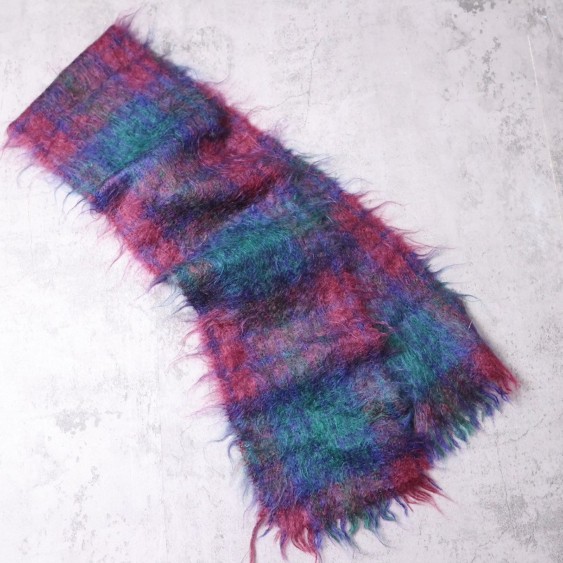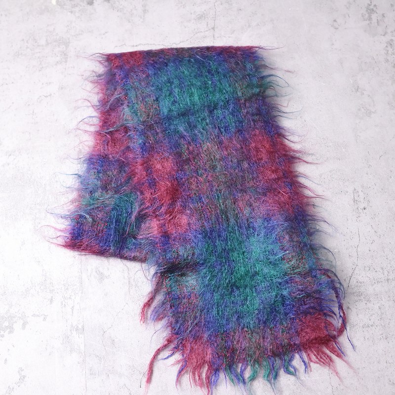 CREAGRAN SCOTLAND製 チェック柄 モヘア×ウールニットマフラー [161746]