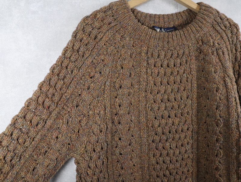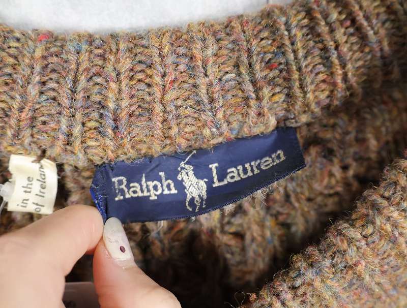 80〜90's Ralph Lauren IRELAND製 ネップ混 ウールアランニットセーター [161752]