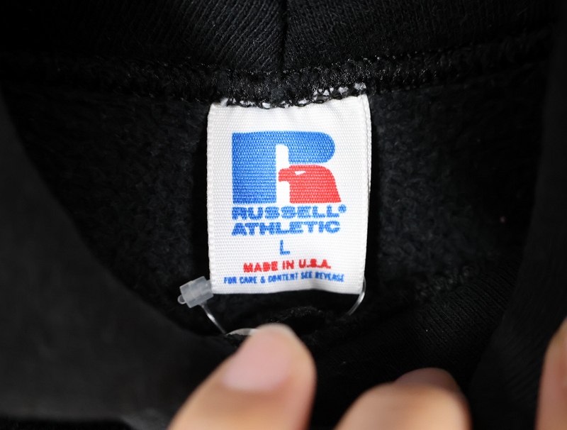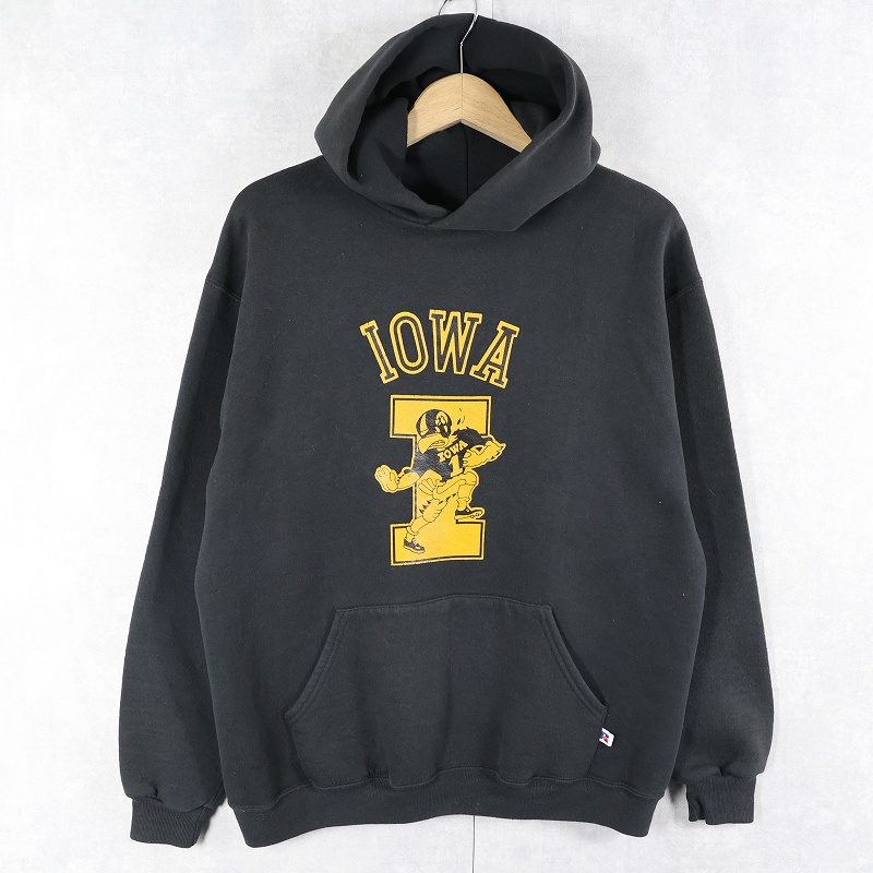 80's RUSSELL ATHLETIC USA製 "IOWA" プリントスウェットフーディー BLACK L [161778]