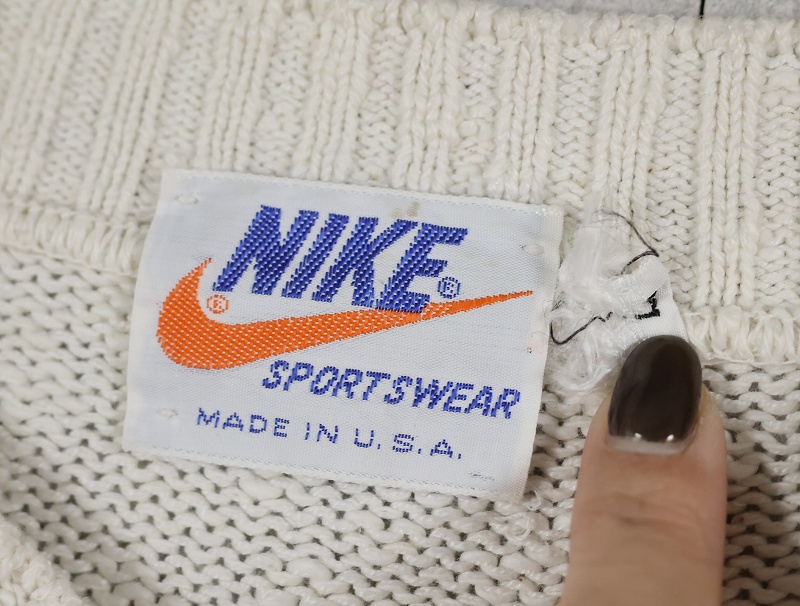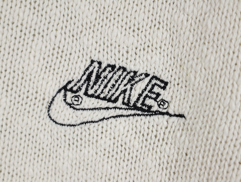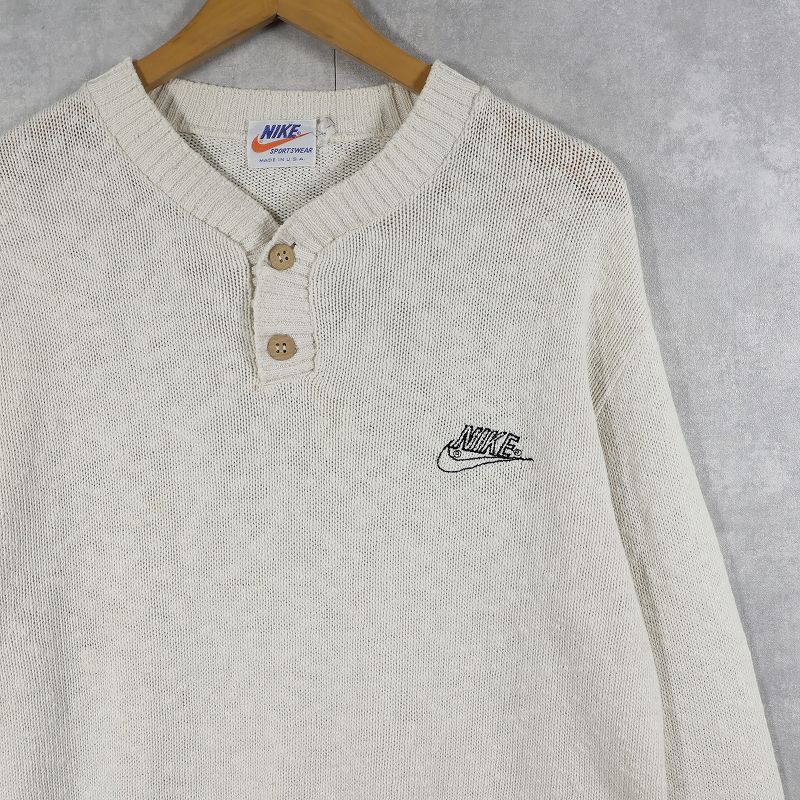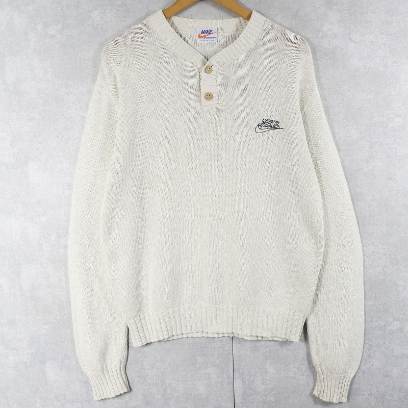 70〜80's NIKE ロゴ刺繍 ヘンリーネック コットンニットセーター L [161807]
