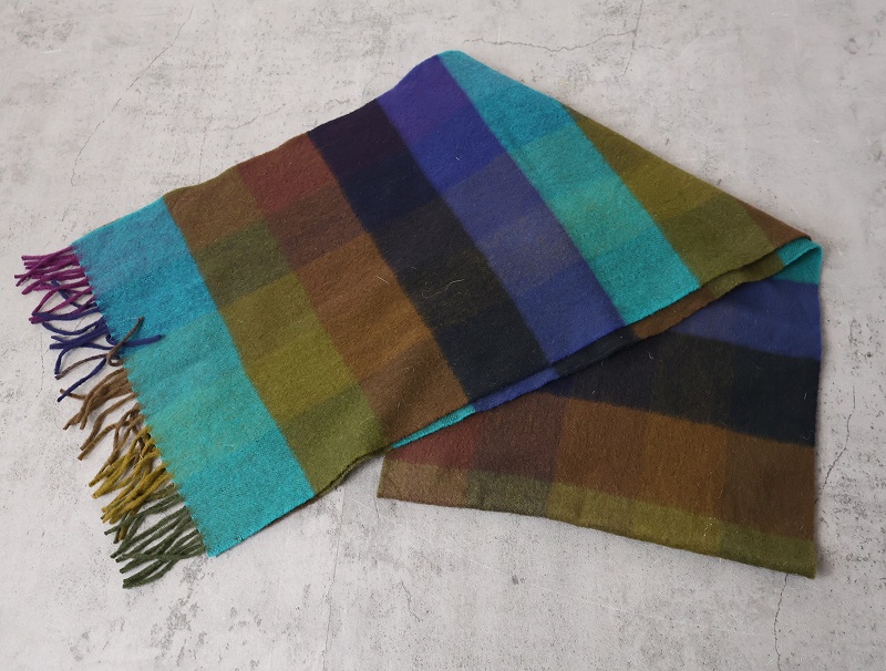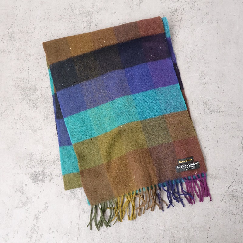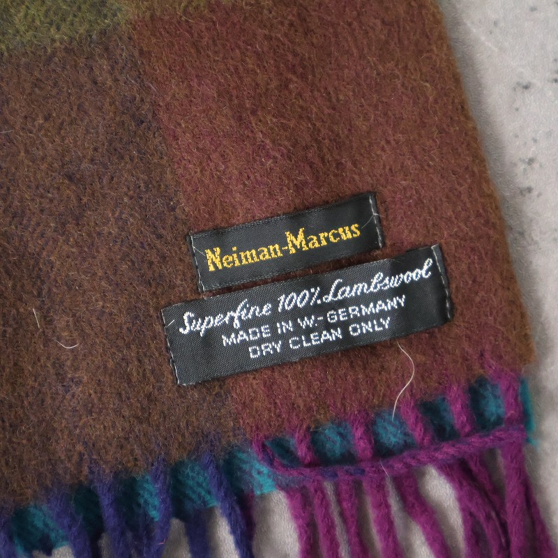 〜90's Neiman-Marcus GERMANY製 チェック柄 ラムウールマフラー [161814]