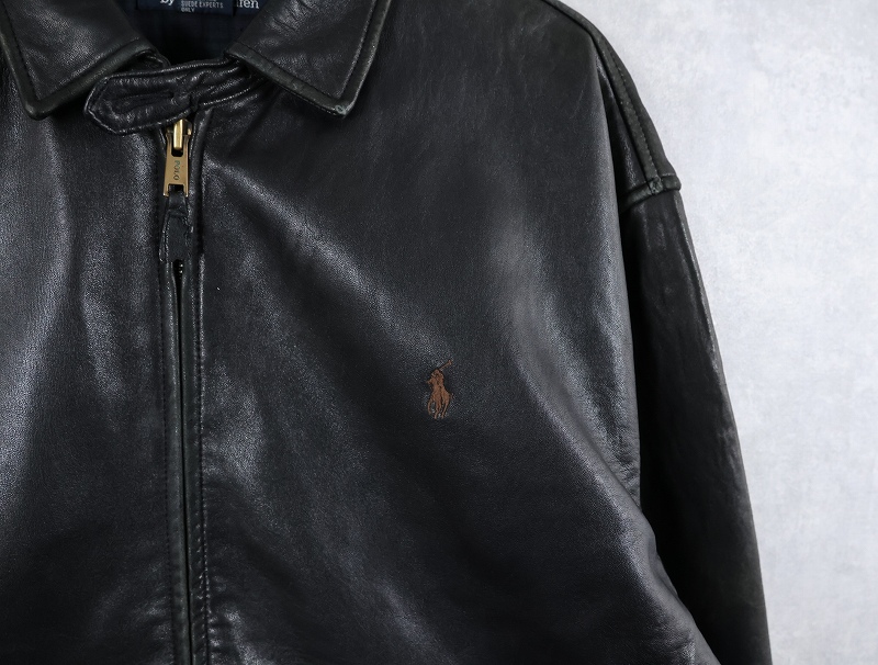 POLO Ralph Lauren チンスト付き ラムレザースイングトップ BLACK M [161830]