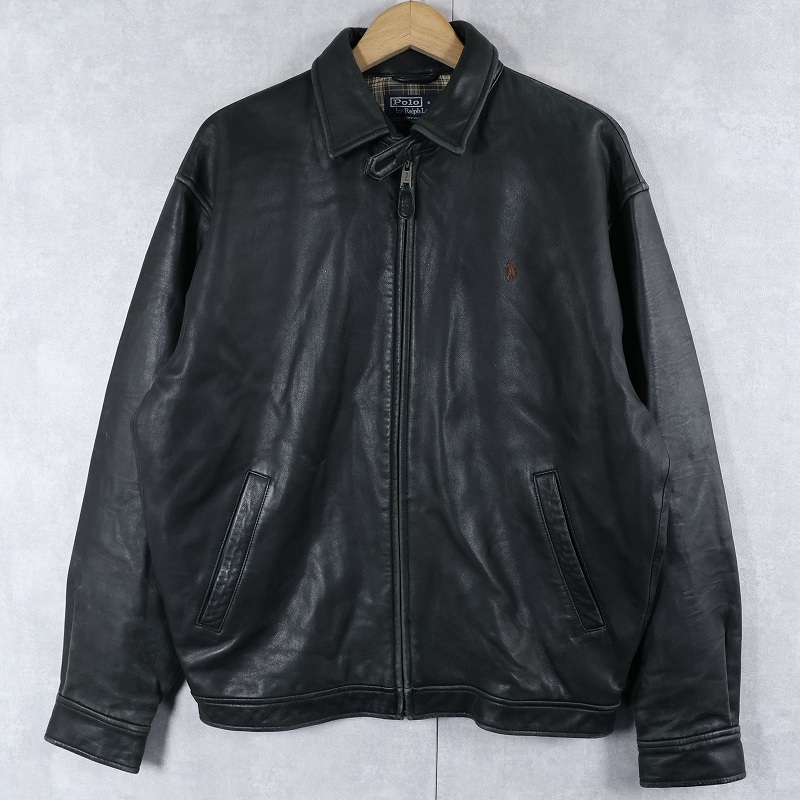 POLO Ralph Lauren チンスト付き ラムレザースイングトップ BLACK M [161831]