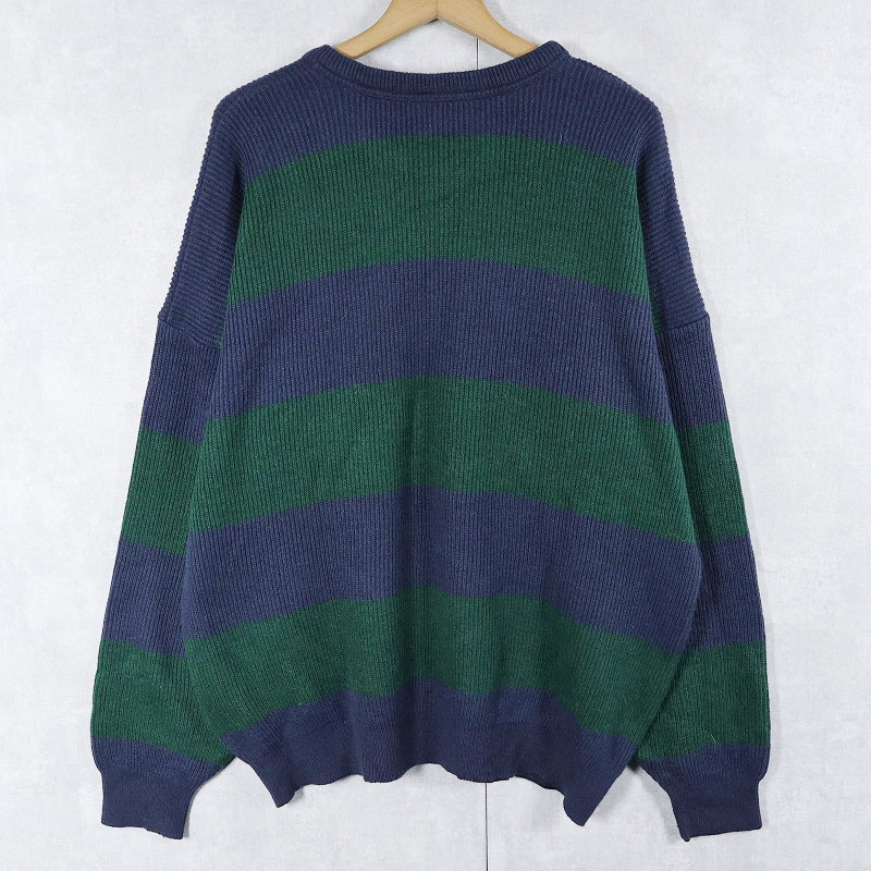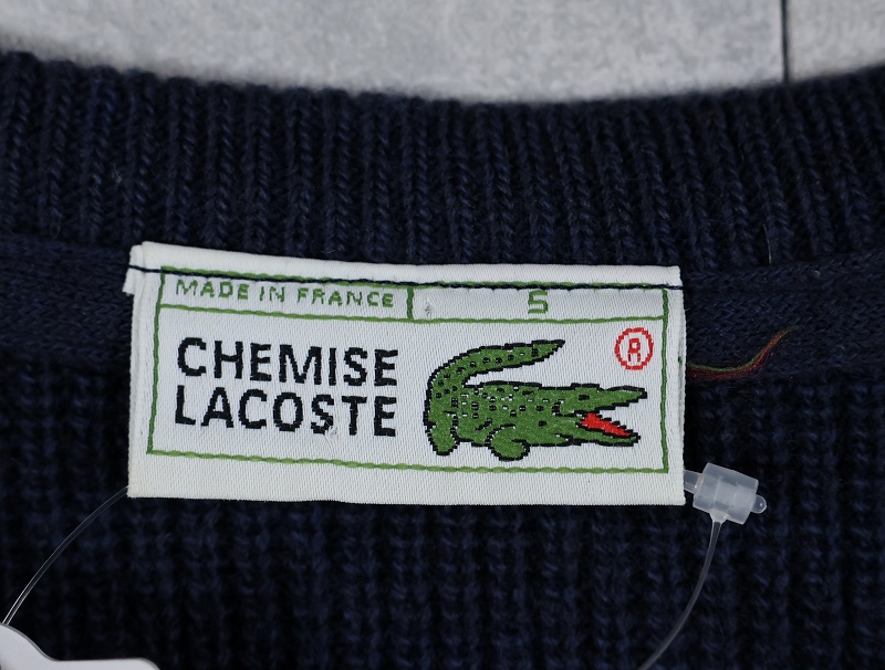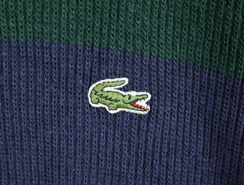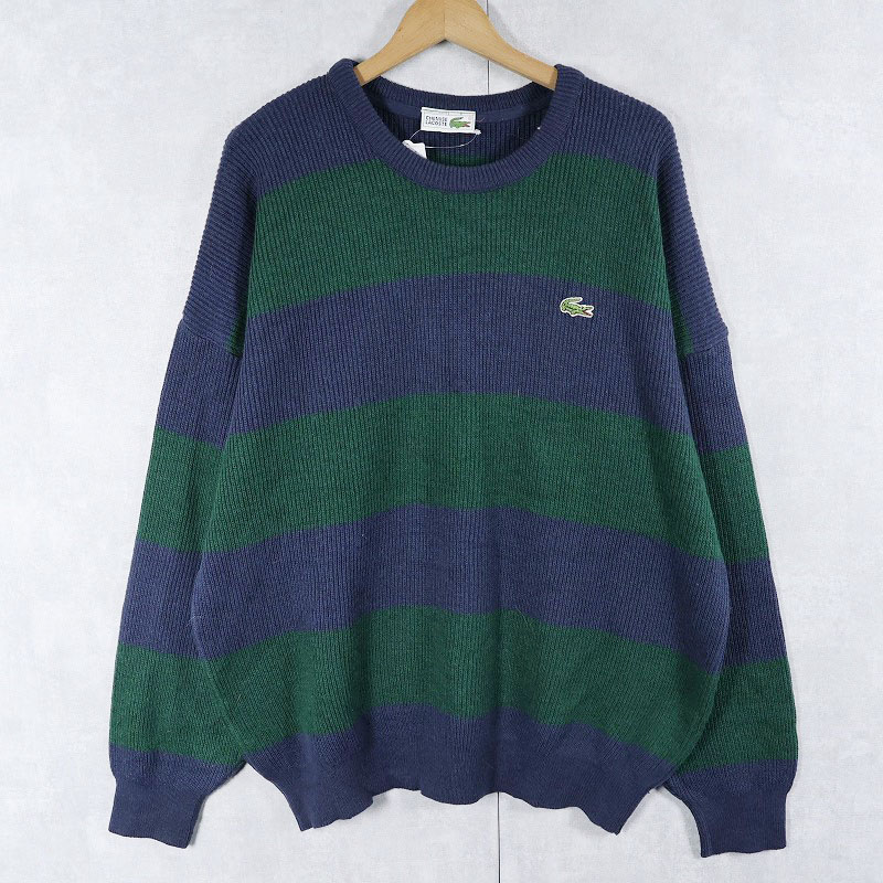 70〜80's CHEMISE LACOSTE FRANCE製 ロゴワッペン ボーダー柄 ウール×アクリルニットセーター SIZE5 [161841]