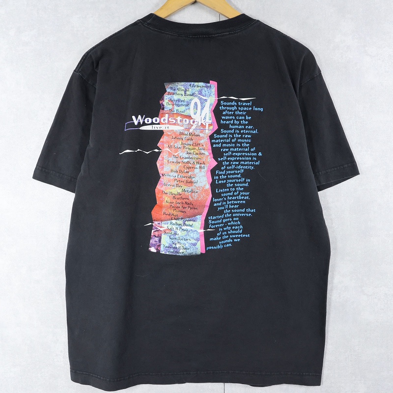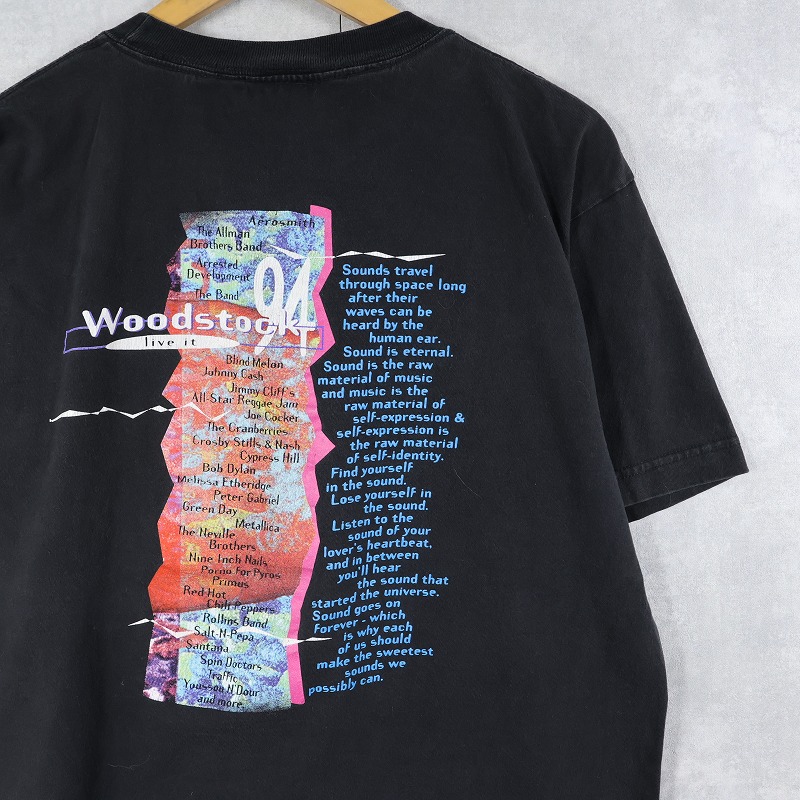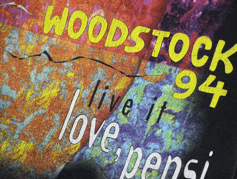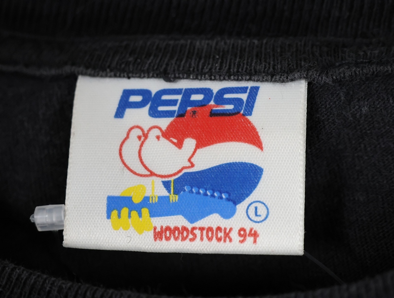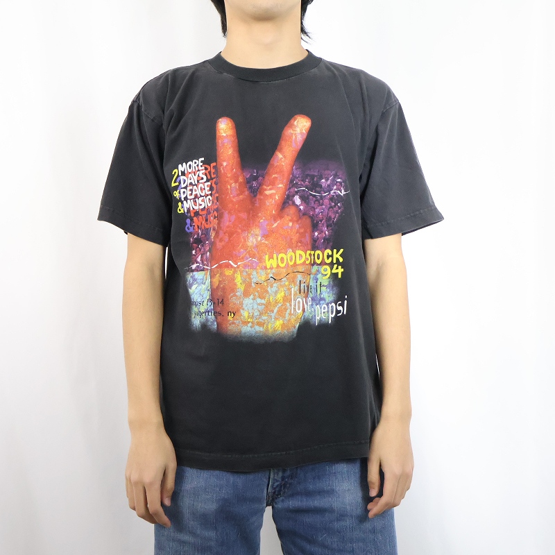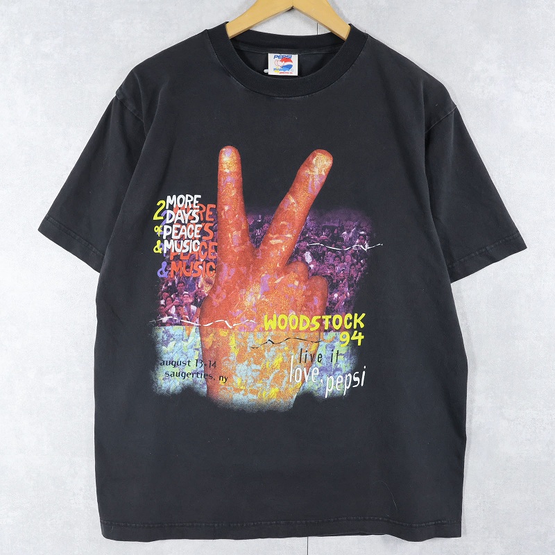 1994 WOODSTOCK × PEPSI "live it love, pepsi" ミュージックフェスティバル プリントTシャツ BLACK L [161906]