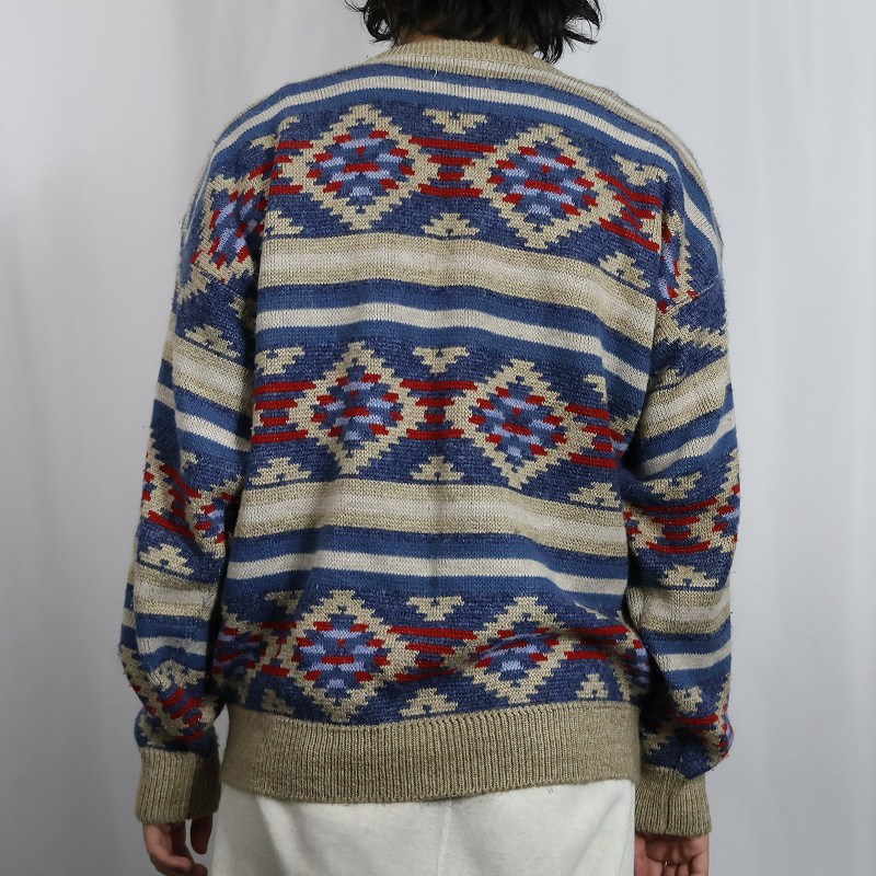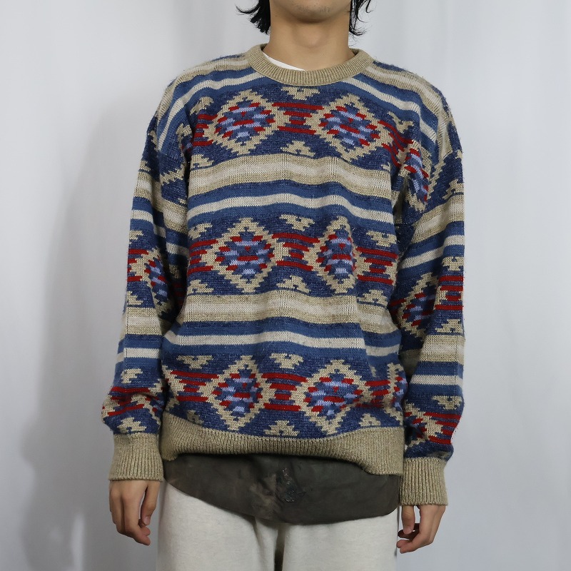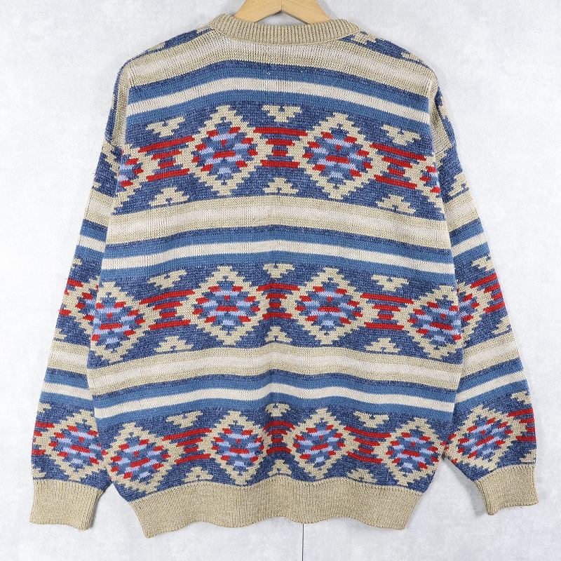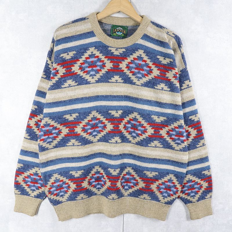 90's JANTZEN USA製 ネイティブ柄 ジャガードニットセーター XL [161935]