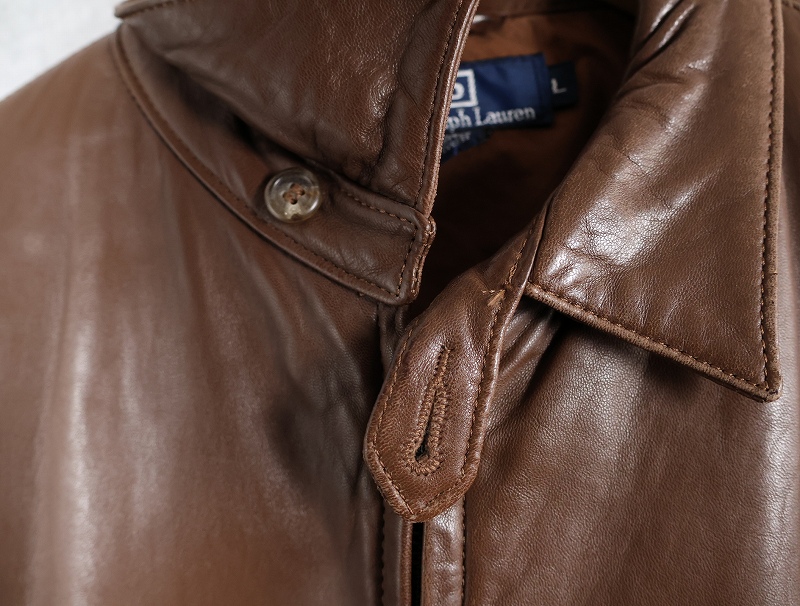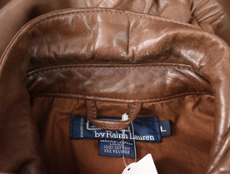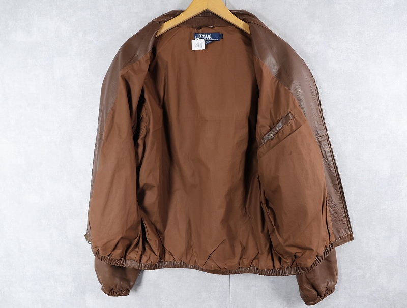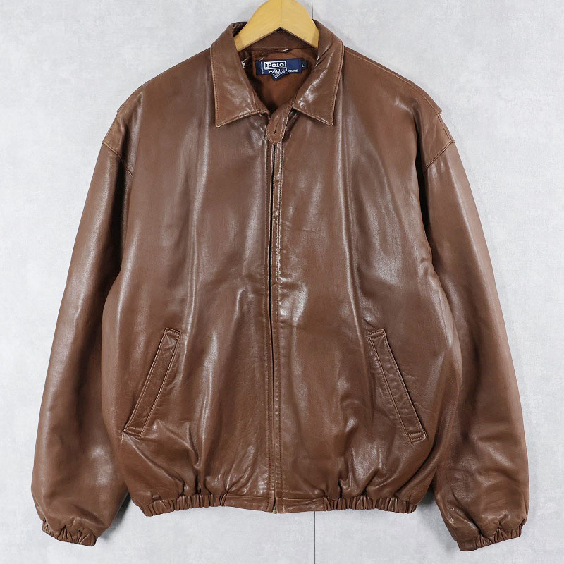 90's POLO Ralph Lauren PORTUGAL製 ポニー無し チンスト付き ラムレザースイングトップ L [161959]