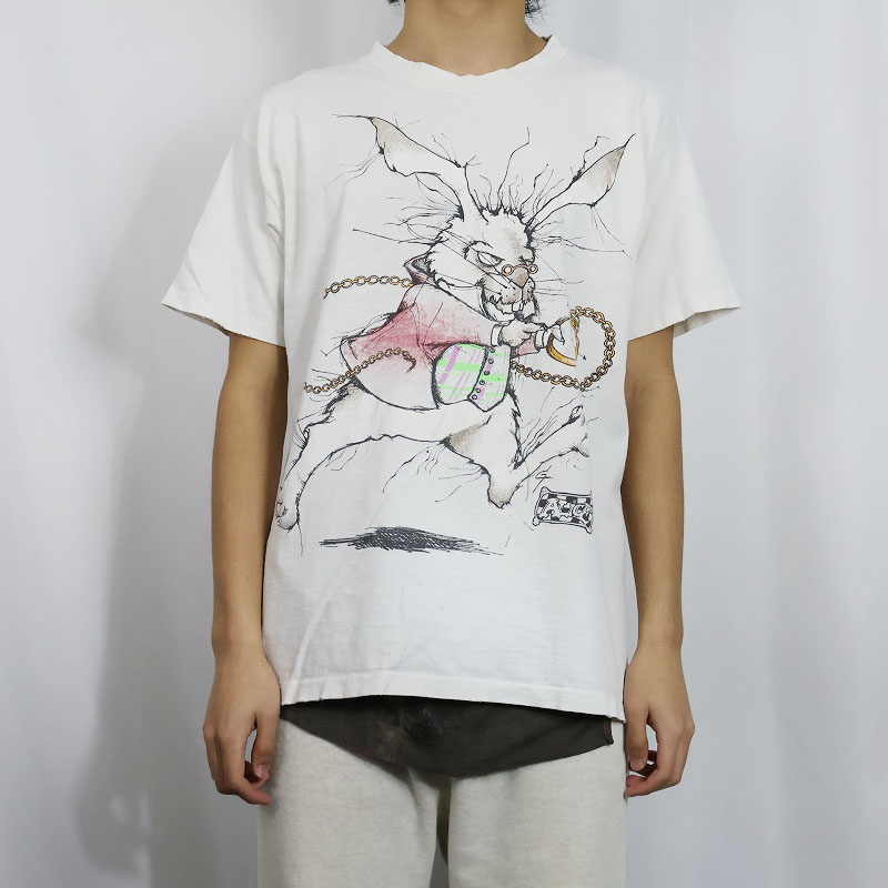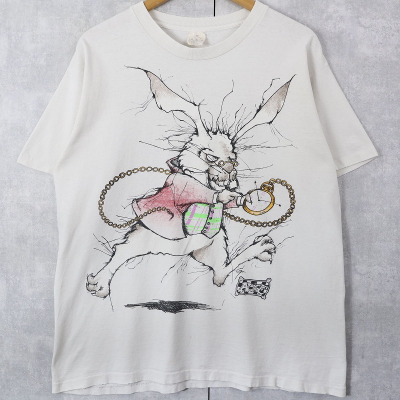 90's Alice in Wonderland USA製 白うさぎ キャラクタープリントTシャツ [161973]