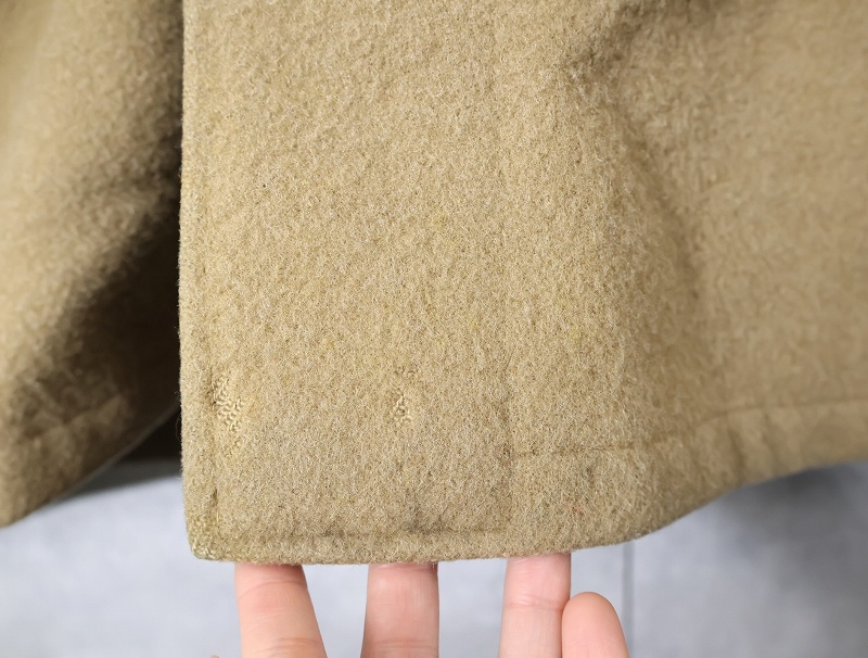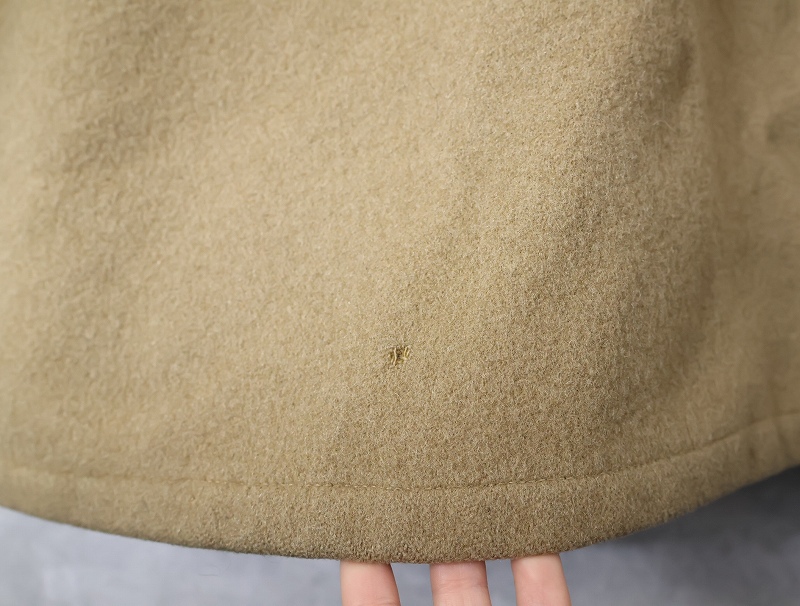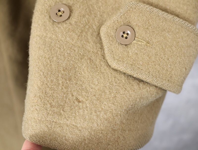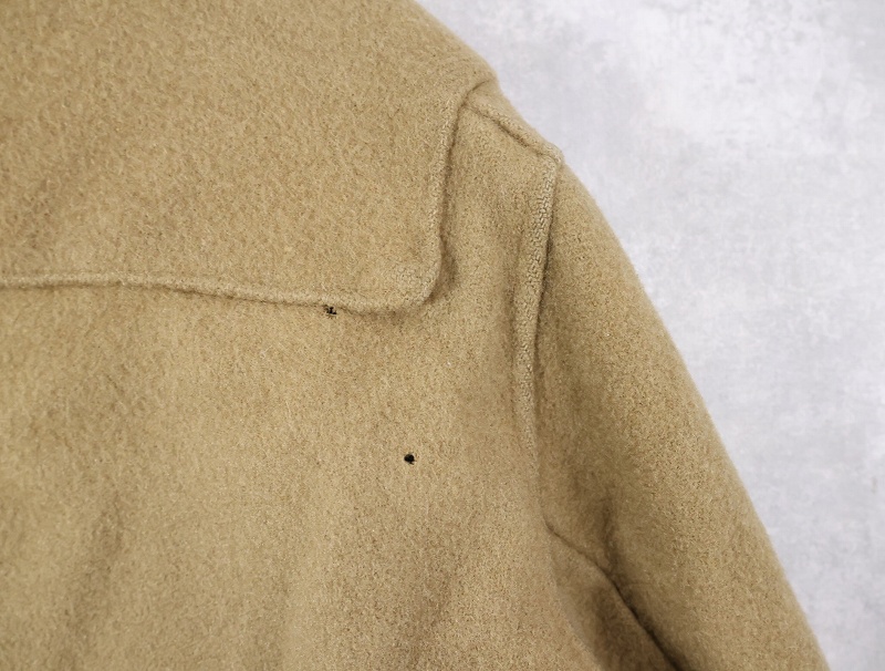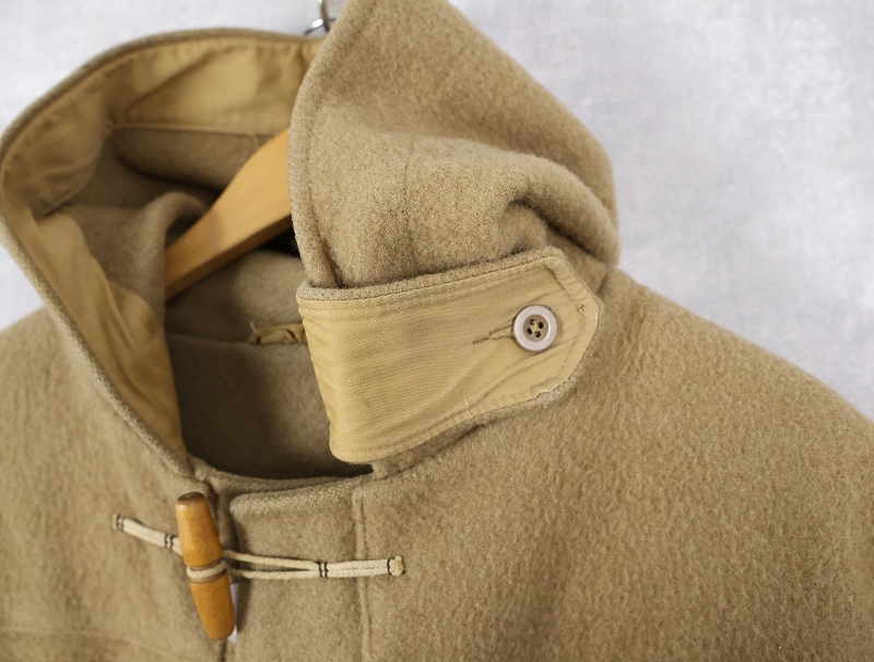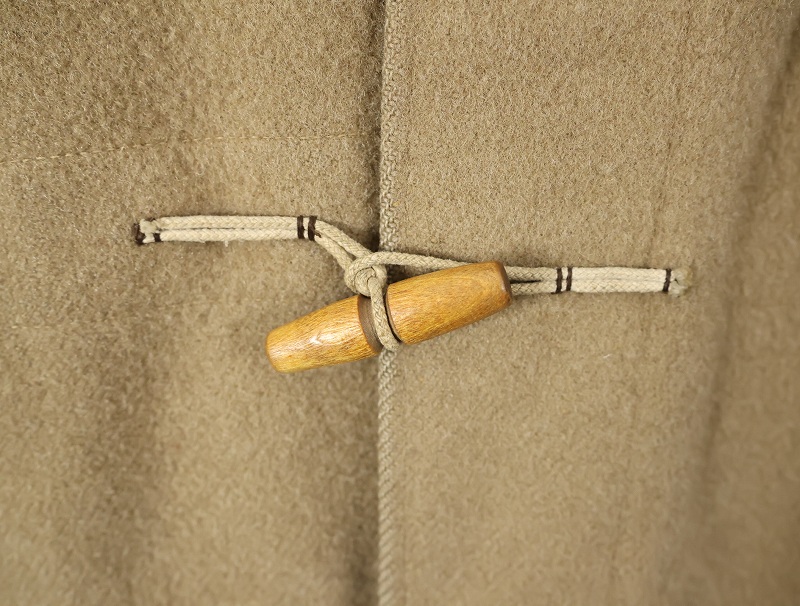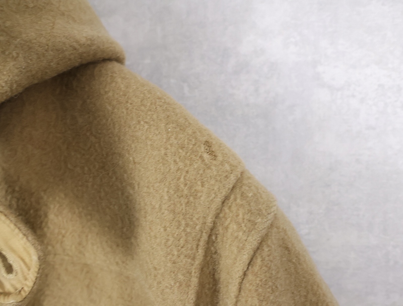 こちらは1940年代〜1950年代頃。木製のトグルが4つの仕様、1つボタンのチンストラップが付き、フード内のスナップボタンが無い移行期の1着と推測されます。