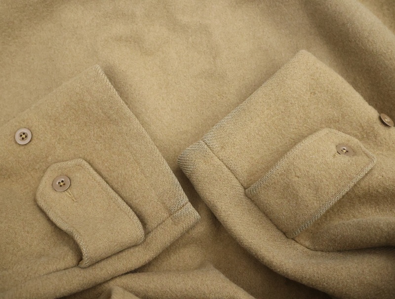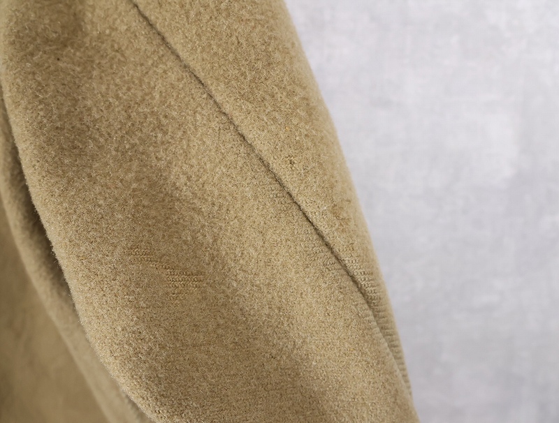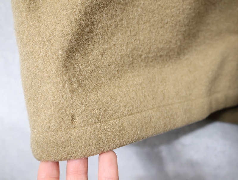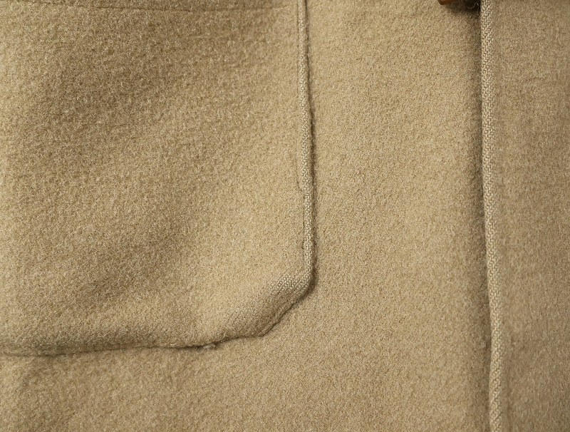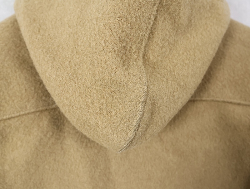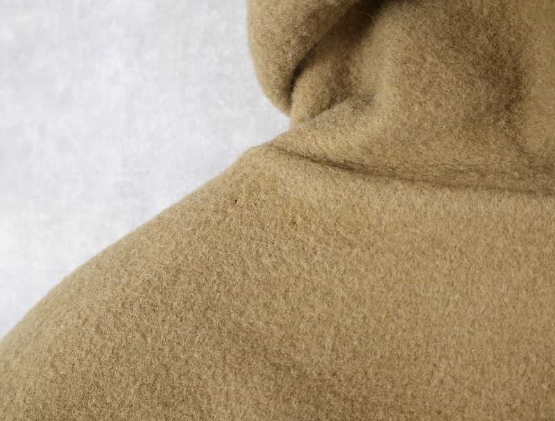 重量のある分厚いメルトン地に大きなフード、膝まで覆う丈と実用性を追求したコートになります。