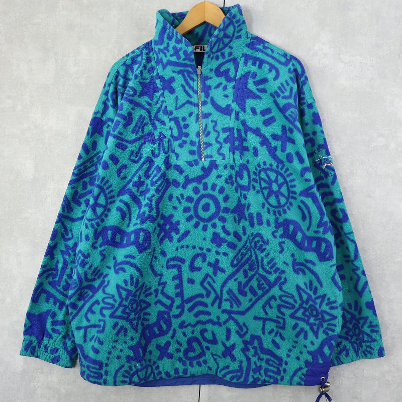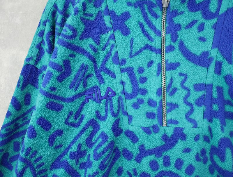 80〜90's FILA ITALY製 総柄 ハーフジップ フリースジャケット L [162030]