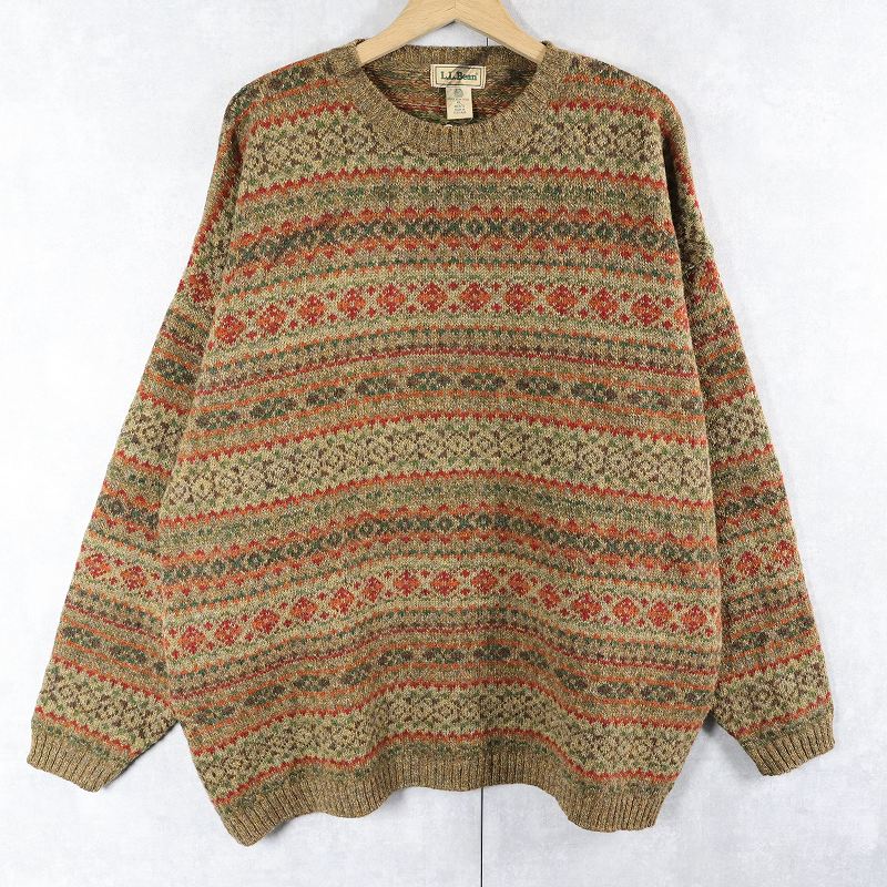 80's L.L.Bean フェアアイル柄 ウールニットセーター XL [162044]