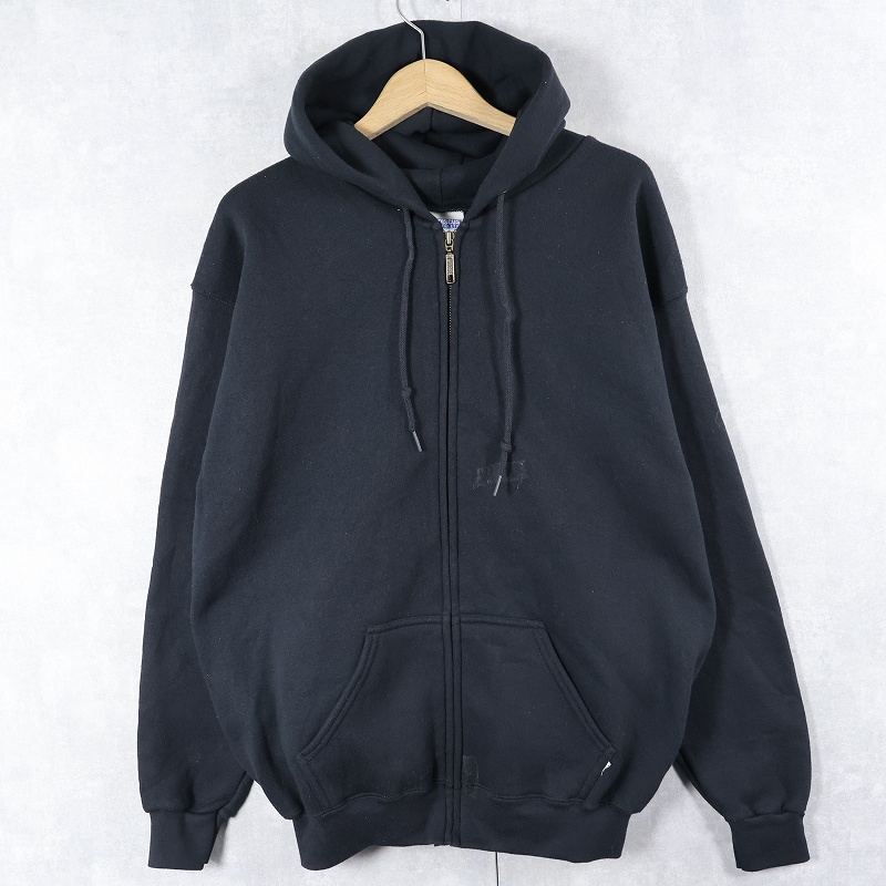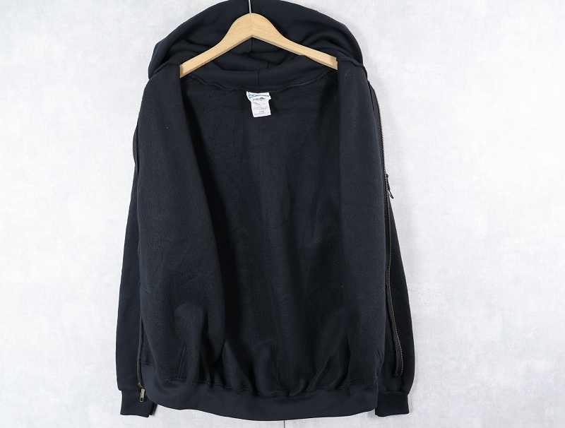 90's DISCUS USA製 無地 スウェットジップパーカー BLACK L [162066]