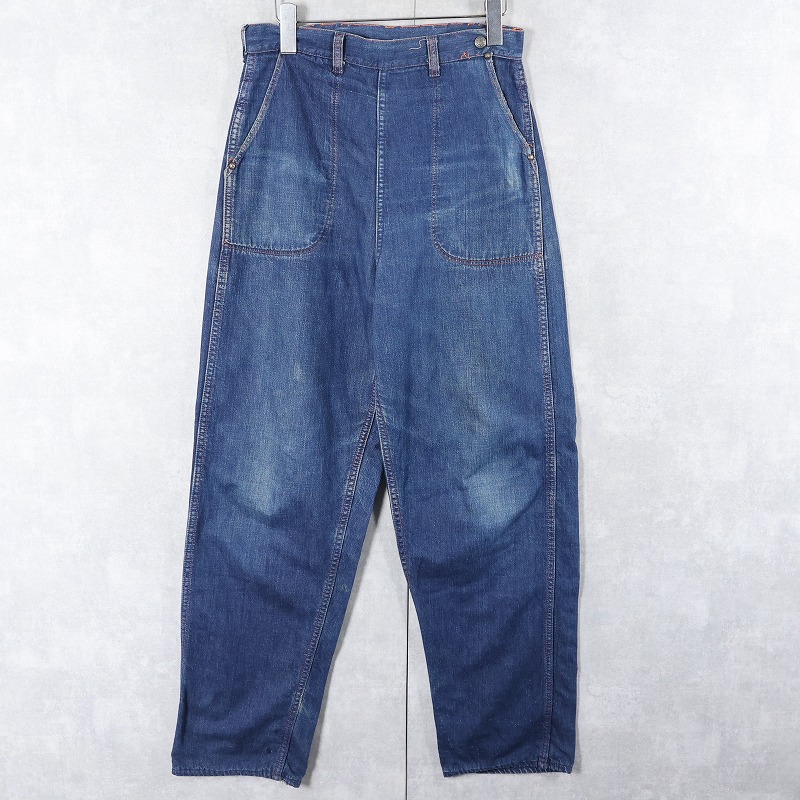 50〜60's 裏地ネル デニムランチパンツ W28 [162067]