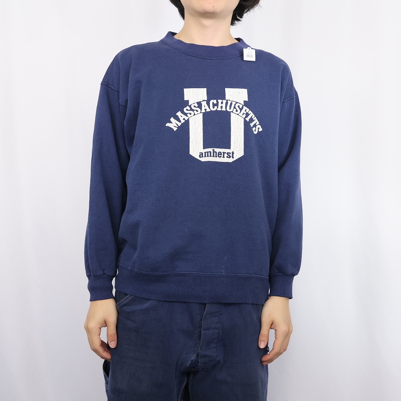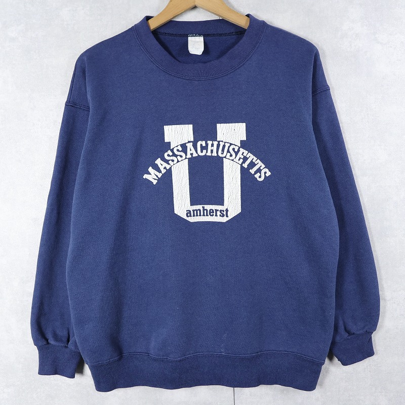 80's Tultex "MASSACHUSETTS" プリントスウェット NAVY [162110]
