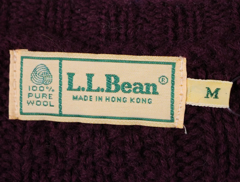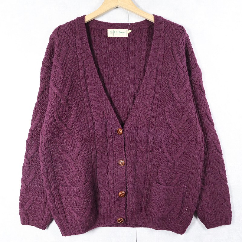 80's L.L.Bean ウールアランニットカーディガン M [162119]