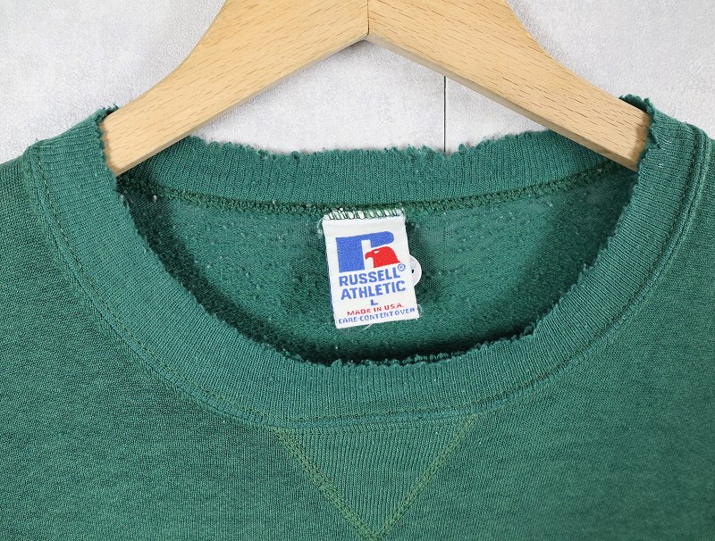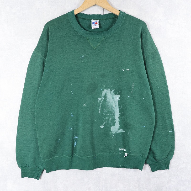 90's RUSSELL ATHLETIC USA製 ペンキペイント 前V 無地スウェット L [162123]