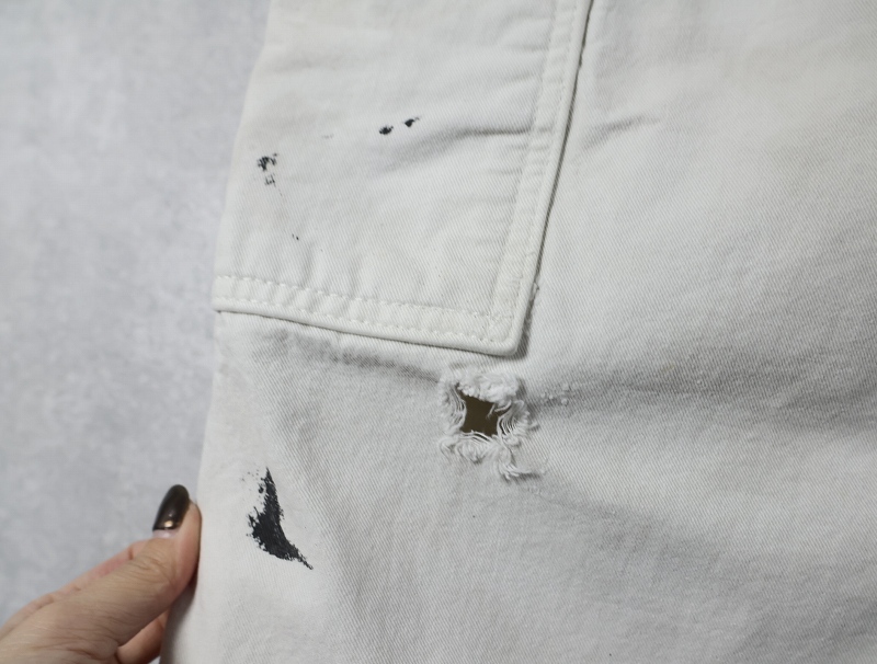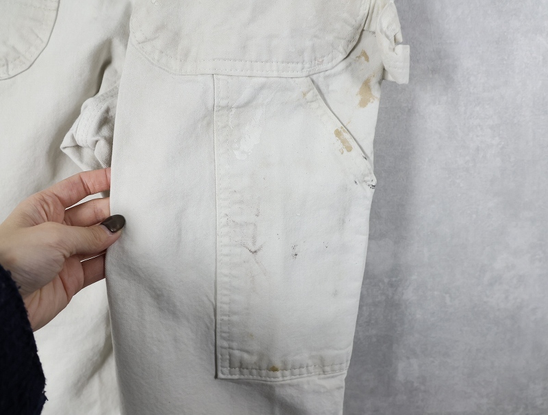- 擦れや穴あき、ペンキ跡があり、古着らしい雰囲気の一点です。