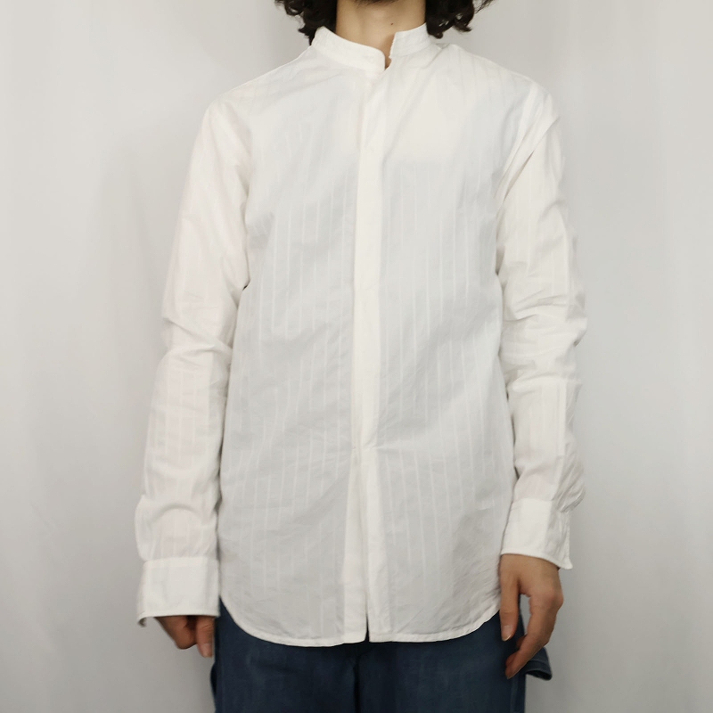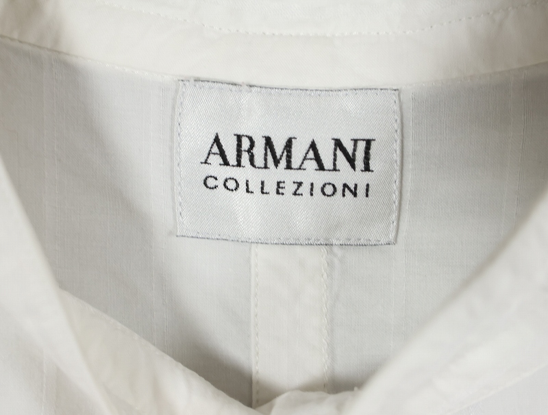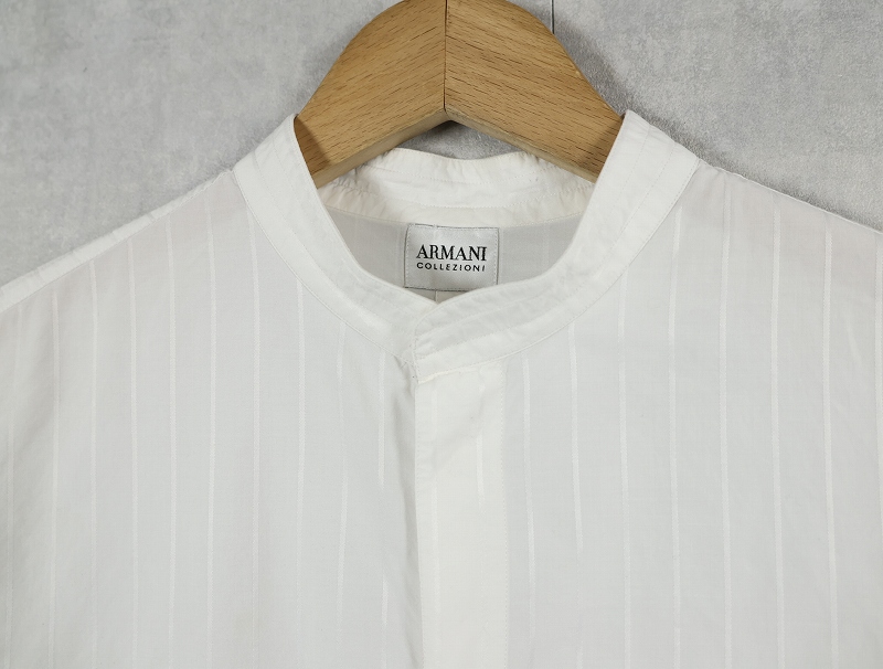 ARMANI COLLEZIONI ストライプ柄 バンドカラーコットンシャツ M [162161]