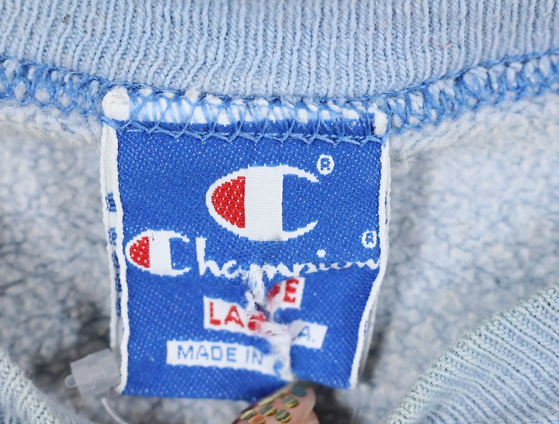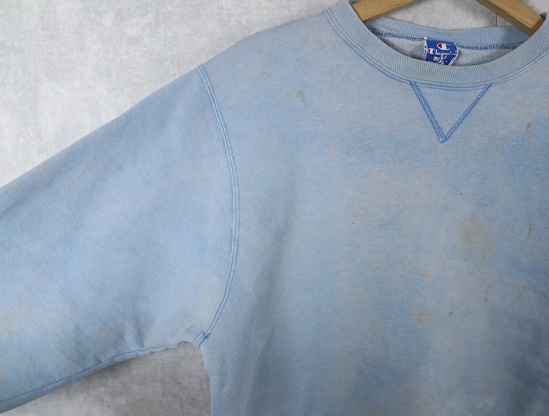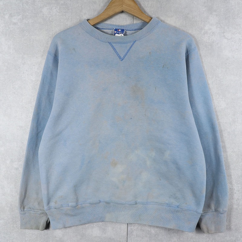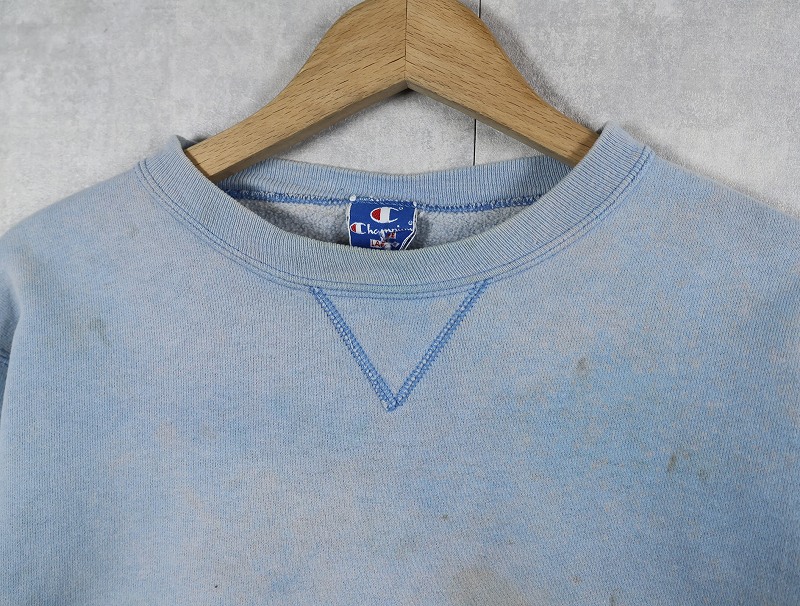 80〜90's Champion USA製 青刺繍タグ 中期 前V無地スウェット L [162169]