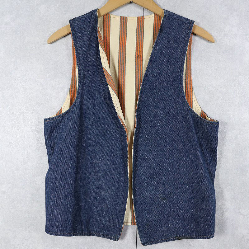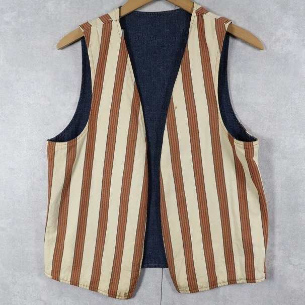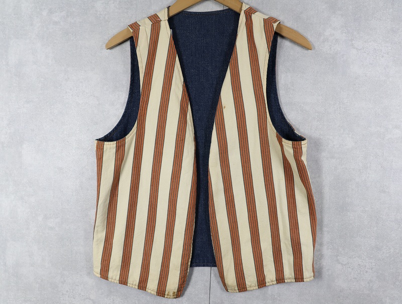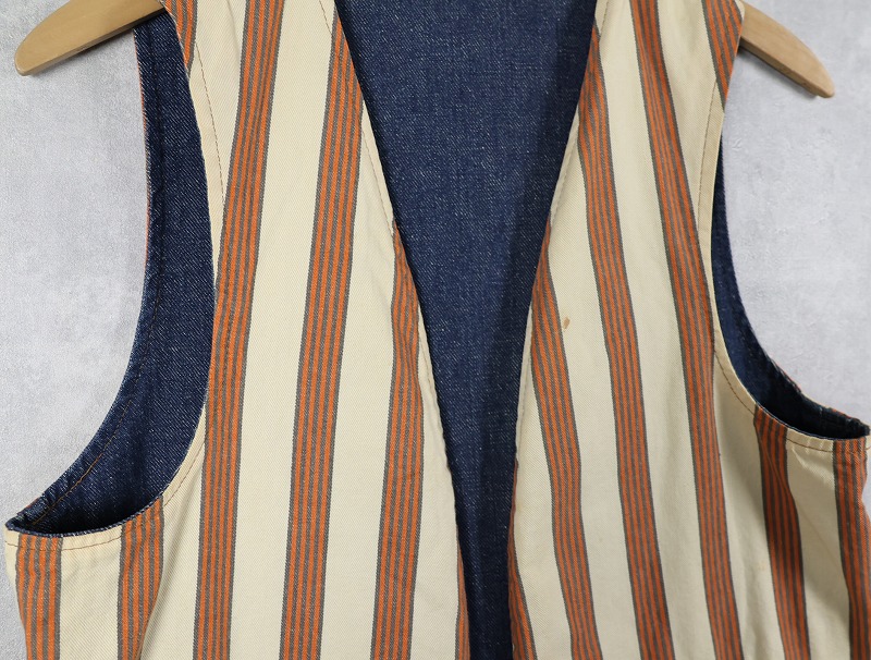 ストライプ柄×デニム リバーシブルベスト [162183]