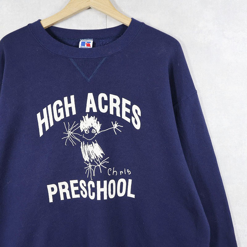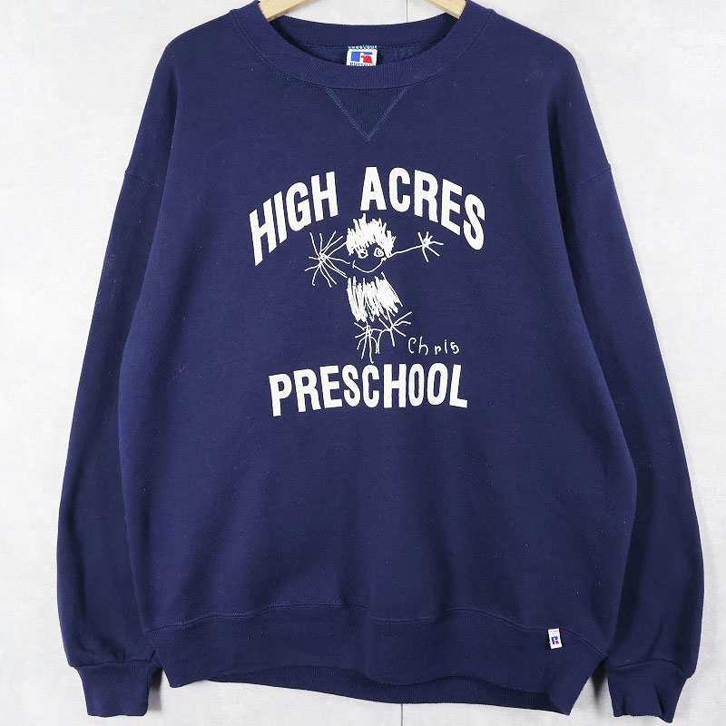 90's RUSSELL ATHLETIC USA製 "HIGH ACRES PRESCHOOL" プリントスウェット NAVY XL [162189]