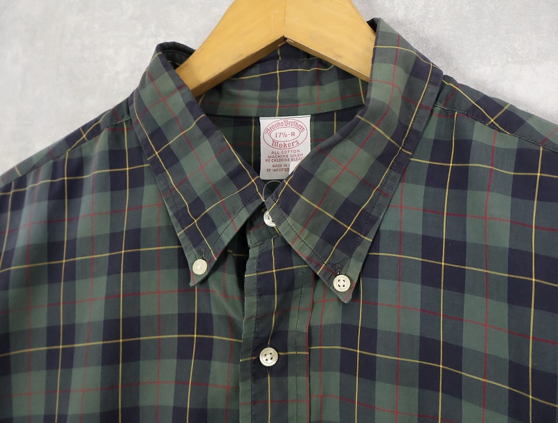 80's Brooks Brothers USA製 チェック柄 ボタンダウンコットンシャツ 17 1/2 [162212]