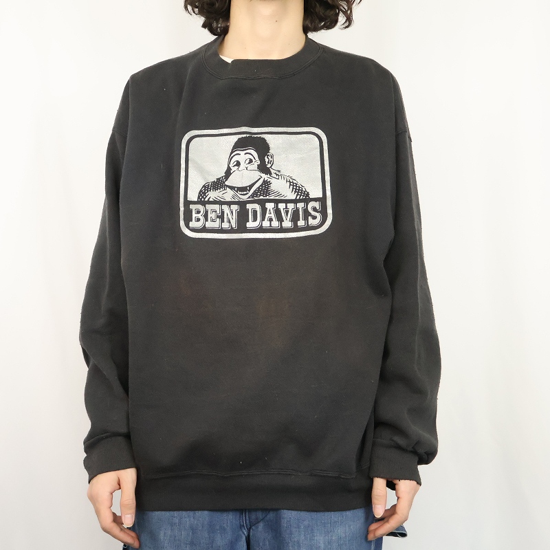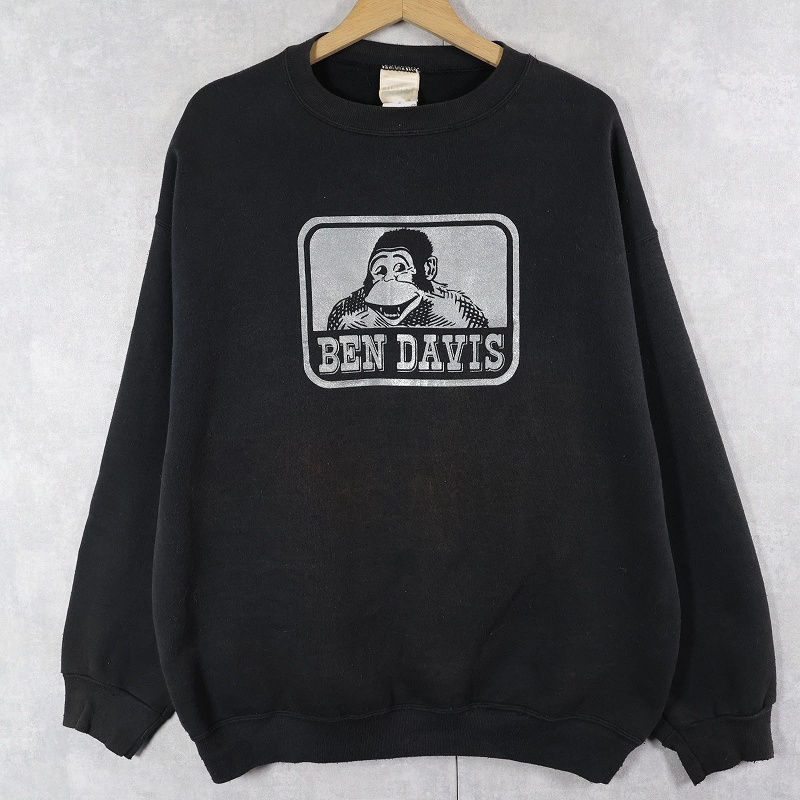 90's BEN DAVIS USA製 キャラクープリントスウェット BLACK XL [162271]