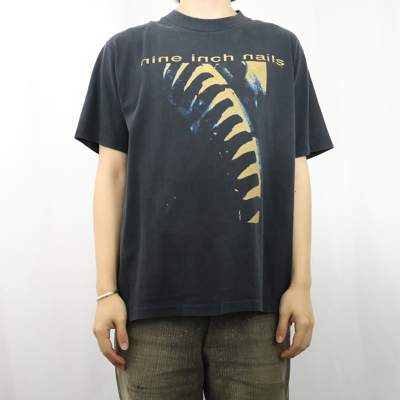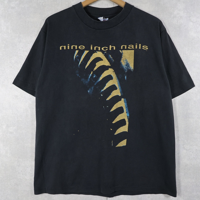 90's NINE INCH NAILS USA製 ロックバンド プリントTシャツ BLACK L [162282]