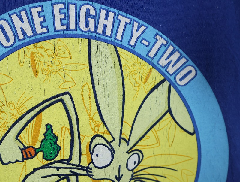 - わずかな薄汚れやプリントにひび、生地の毛羽立ちがありますが、とても雰囲気の良い一点です。