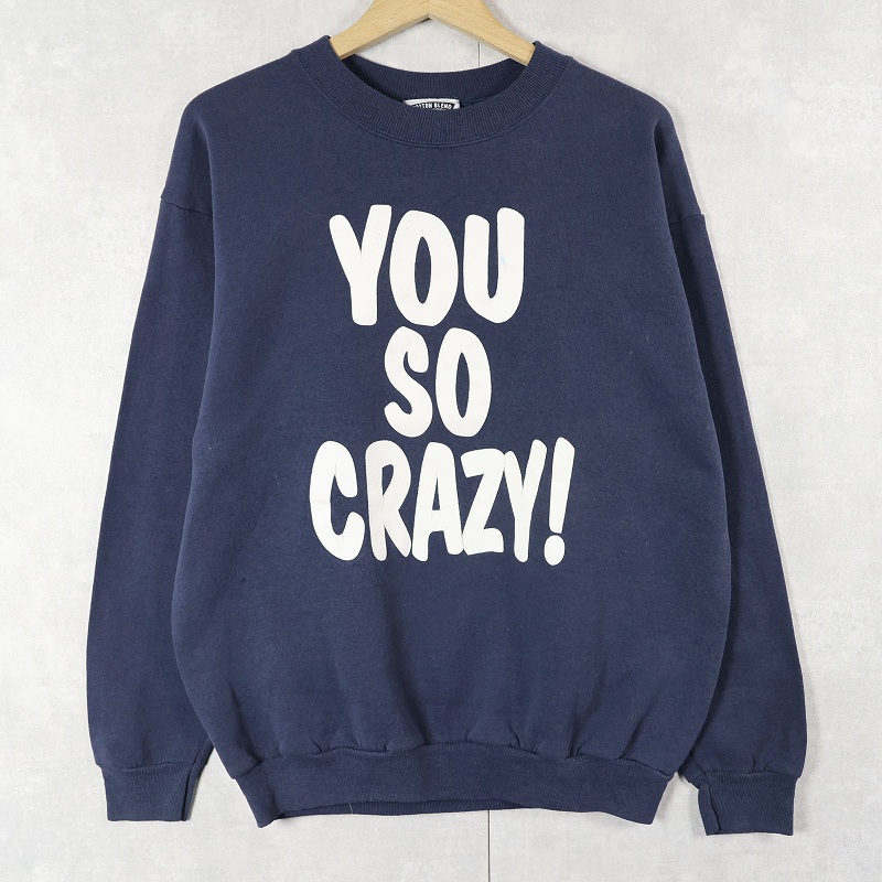 90's Lee USA製 "YOU SO CRAZY!" プリントスウェット NAVY L [162292]
